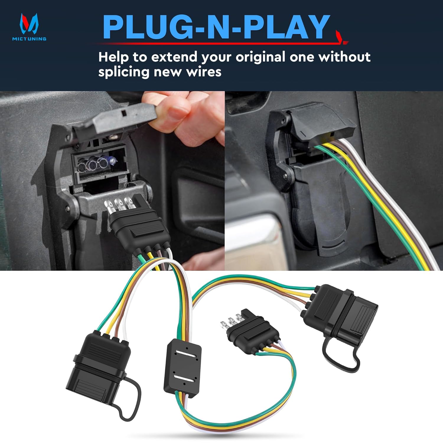 Descrição do Produto: MICTUNING Universal 4 Way Flat Y-Splitter Plug and Play Adapter Extension Harness para LED Tailgate Light Bar e Luzes de Trailers
