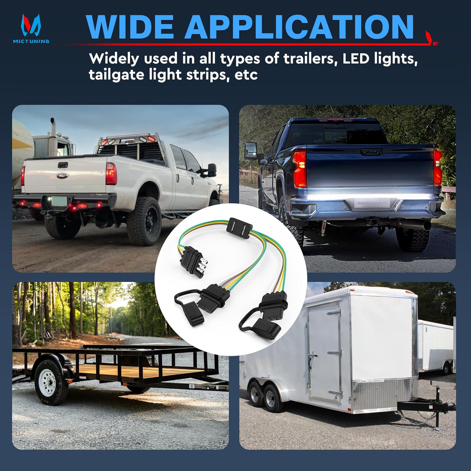 O MICTUNING Universal 4 Way Flat Y-Splitter é a solução ideal para quem busca uma conexão eficiente e segura para luzes de trailers e barras de luz traseiras. Este adaptador de extensão foi projetado com um design especial que se adapta perfeitamente a luzes LED de trailers, barras de luz de caçamba e outras aplicações, garantindo uma instalação prática e sem complicações.