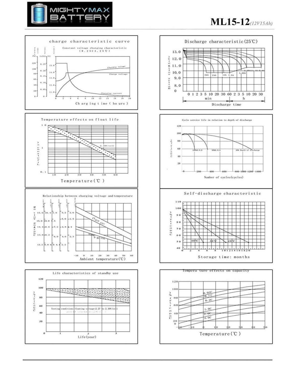 Com dimensões compactas de 5.94 polegadas x 3.86 polegadas x 3.98 polegadas e terminais do tipo F2, a ML15-12 é ideal para uma variedade de dispositivos que exigem uma fonte de energia estável e duradoura. É importante notar que a listagem refere-se apenas à bateria, sem incluir chicotes de fios ou acessórios de montagem.