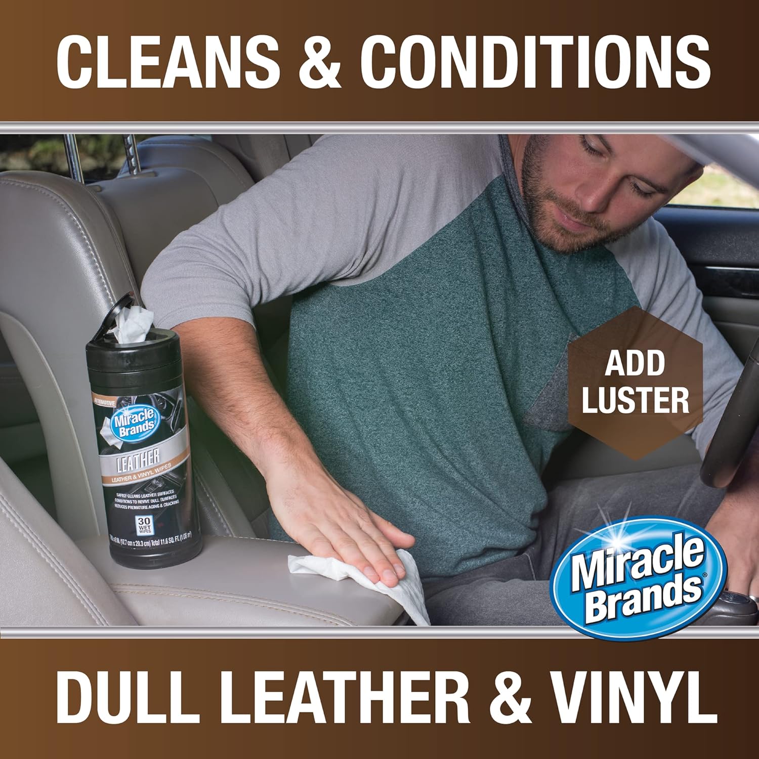 Descrição do Produto: Miracle Brands Auto Leather Wipes – 30 Contém, Limpeza