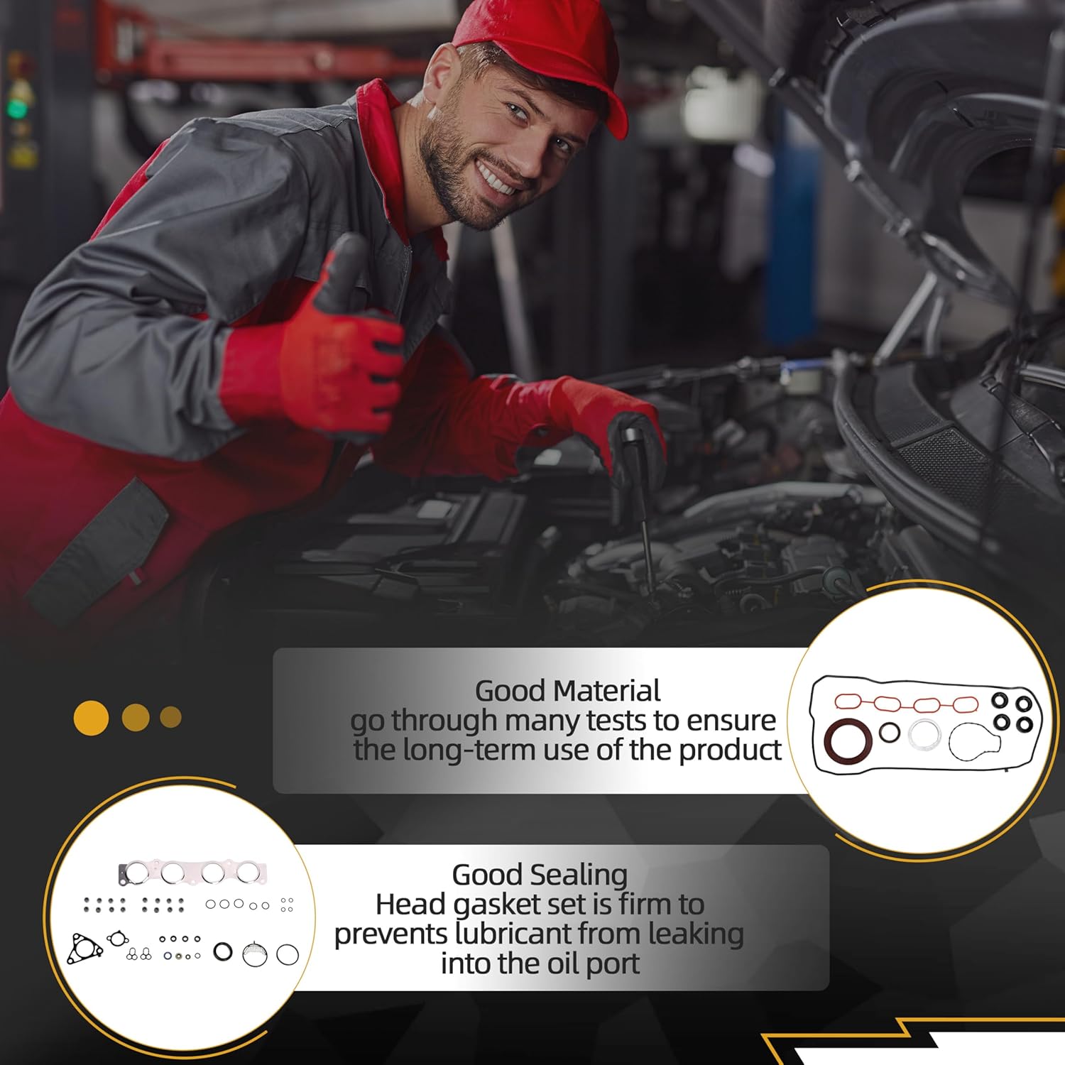 Atenção: É fundamental confirmar se o número da peça do seu antigo conjunto de juntas de cabeçote corresponde ao número listado em nosso produto. Recomendamos fortemente a instalação profissional, pois o kit não inclui instruções.