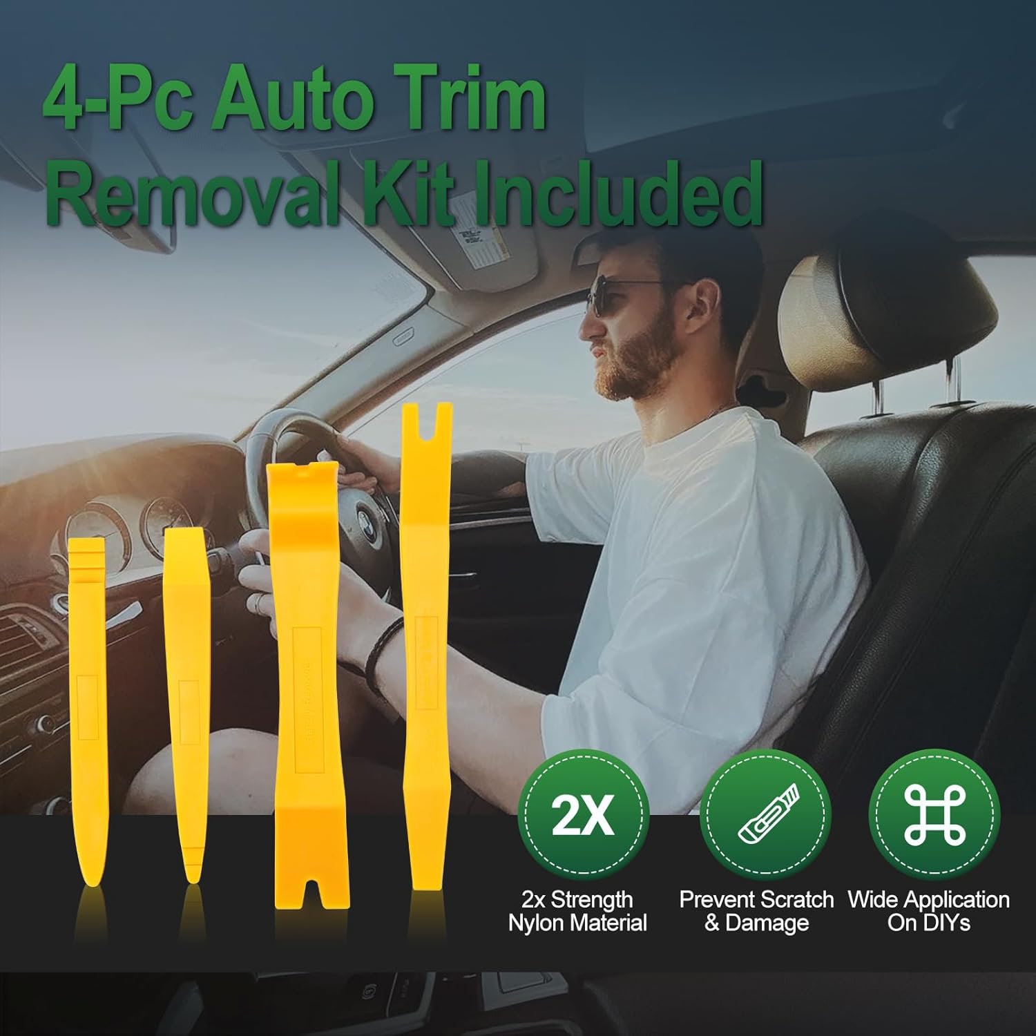 - Kit de ferramentas de remoção de acabamento incluído – um kit de 4 peças feito com material de nylon resistente.