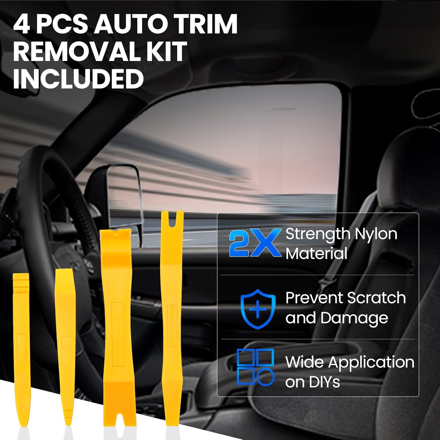- [Ferramentas de Montagem Inclusas] O kit inclui um conjunto de ferramentas de remoção de acabamento automotivo de 4 peças, construídas em fibra de nylon resistente, facilitando a remoção ou instalação de peças do carro de forma prática e segura.