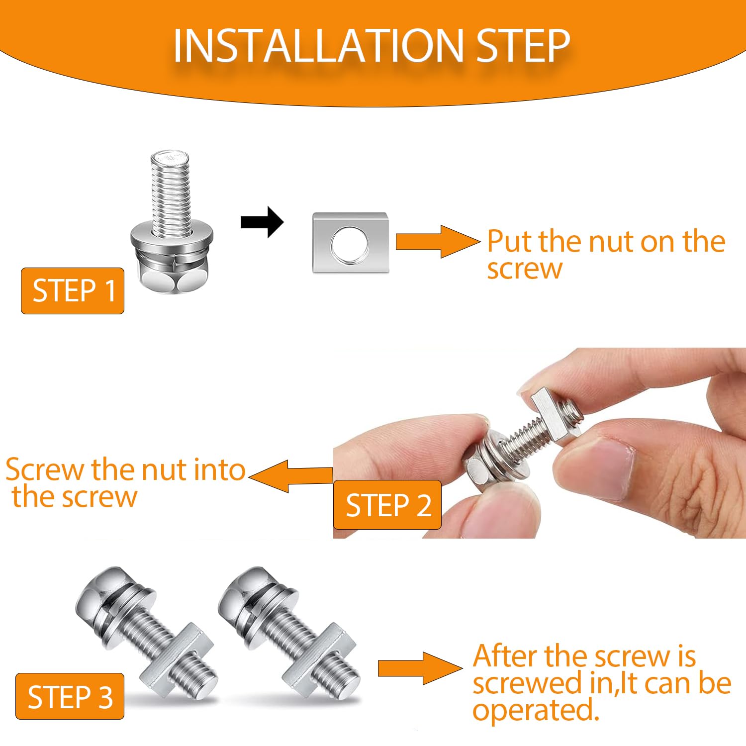 - ✔MATERIAL: Fabricados em aço inoxidável 304, esses parafusos e porcas são extremamente fortes e confiáveis, além de serem resistentes à corrosão e ao ferrugem. Diga adeus à preocupação com substituições frequentes!