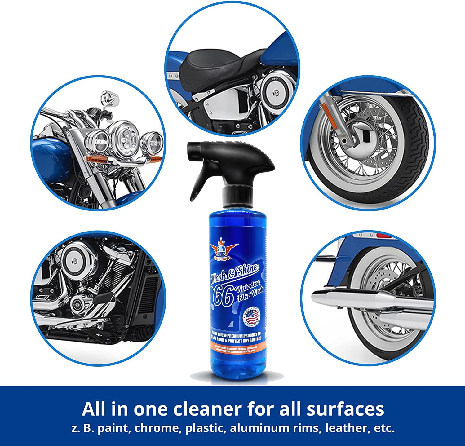 O efeito de brilho ultra intenso é garantido com o Wash&Shine 66. Basta borrifar, limpar e polir para alcançar um brilho perfeito. Este spray é extremamente poderoso e fácil de armazenar, permitindo que você mantenha sua moto impecável em qualquer lugar e a qualquer momento, seja na sua garagem ou durante uma viagem.
