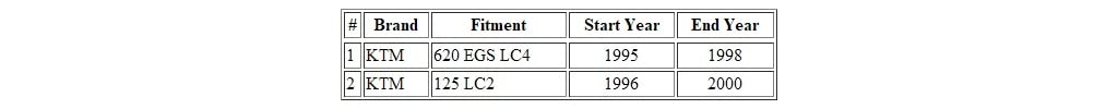 – Compatibilidade: Projetado especificamente para KTM 125 LC2 (1996-2000) e 620 EGS LC4 (1995-1998).