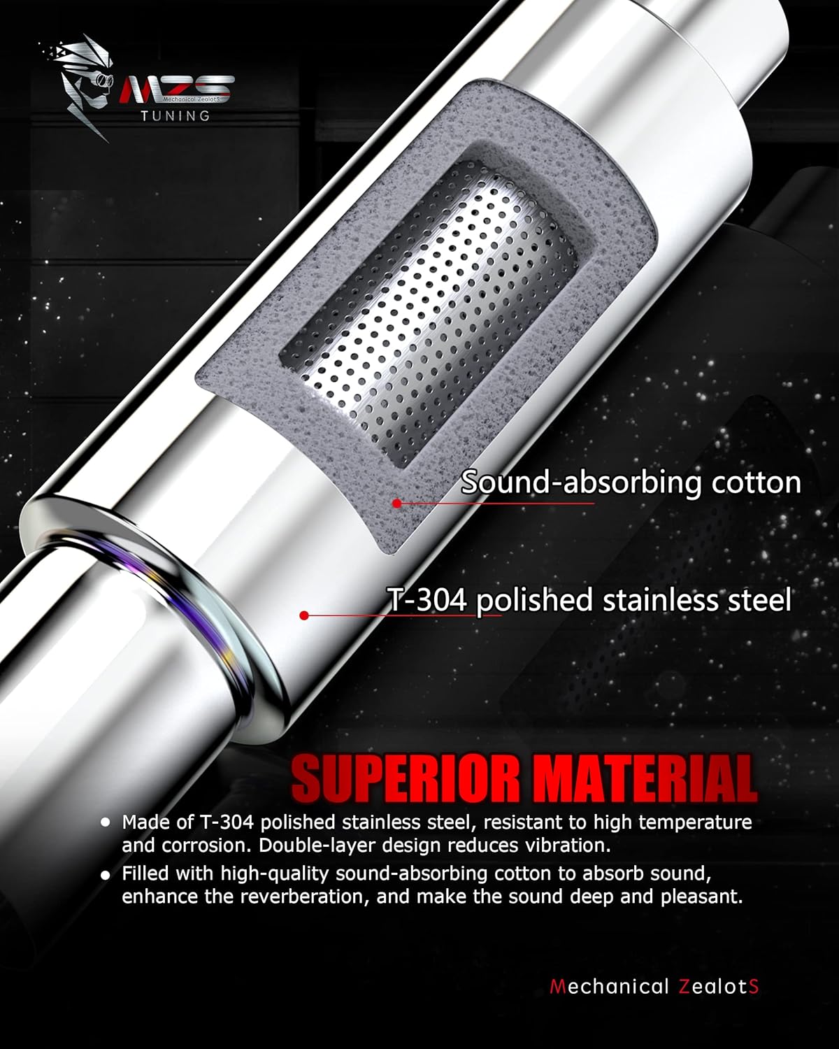 Fabricado em aço inoxidável T-304 polido de dupla camada, o MZS é resistente a altas temperaturas e corrosão, além de ser à prova de rachaduras e ferrugem. Essa durabilidade garante uma vida útil prolongada, reduzindo a vibração e mantendo a eficiência do sistema de escapamento. O design exclusivo da ponta azul queimada não só melhora a estética do seu carro, mas também se torna um ponto focal artístico na parte traseira, fazendo com que seu veículo se destaque na multidão.