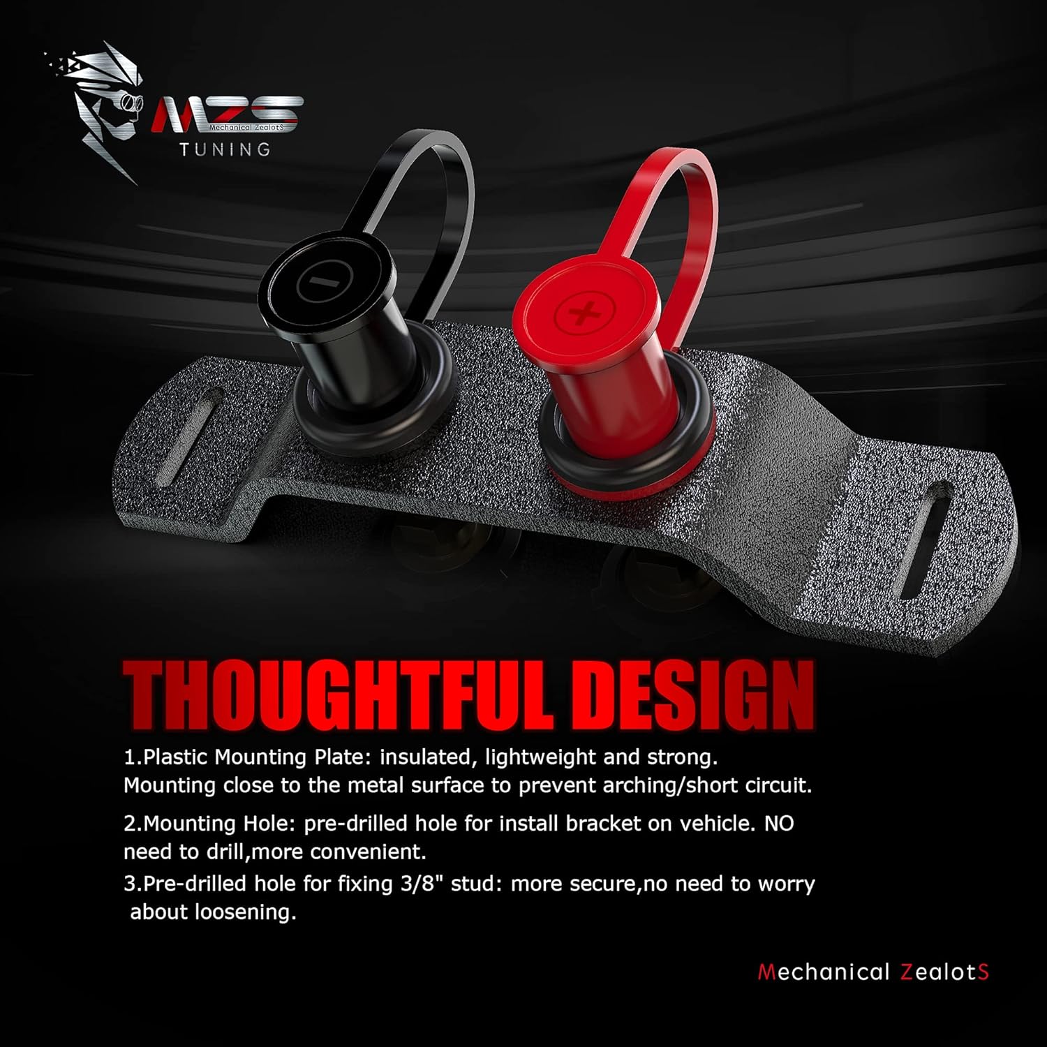 Compatível com uma ampla gama de veículos, o MZS Universal Battery Jump Post é ideal para o Maverick X3, RZR e todos os modelos de UTVs e ATVs, sejam eles de 2 ou 4 lugares. Também pode ser adaptado para caminhões, carros de corrida, trailers de viagem, tratores, cortadores de grama, barcos a diesel e muito mais. A instalação é simples: basta encontrar um local adequado, usar o suporte plástico para fixar o kit de terminais de bateria no seu veículo e conectar diretamente, sem necessidade de modificações.