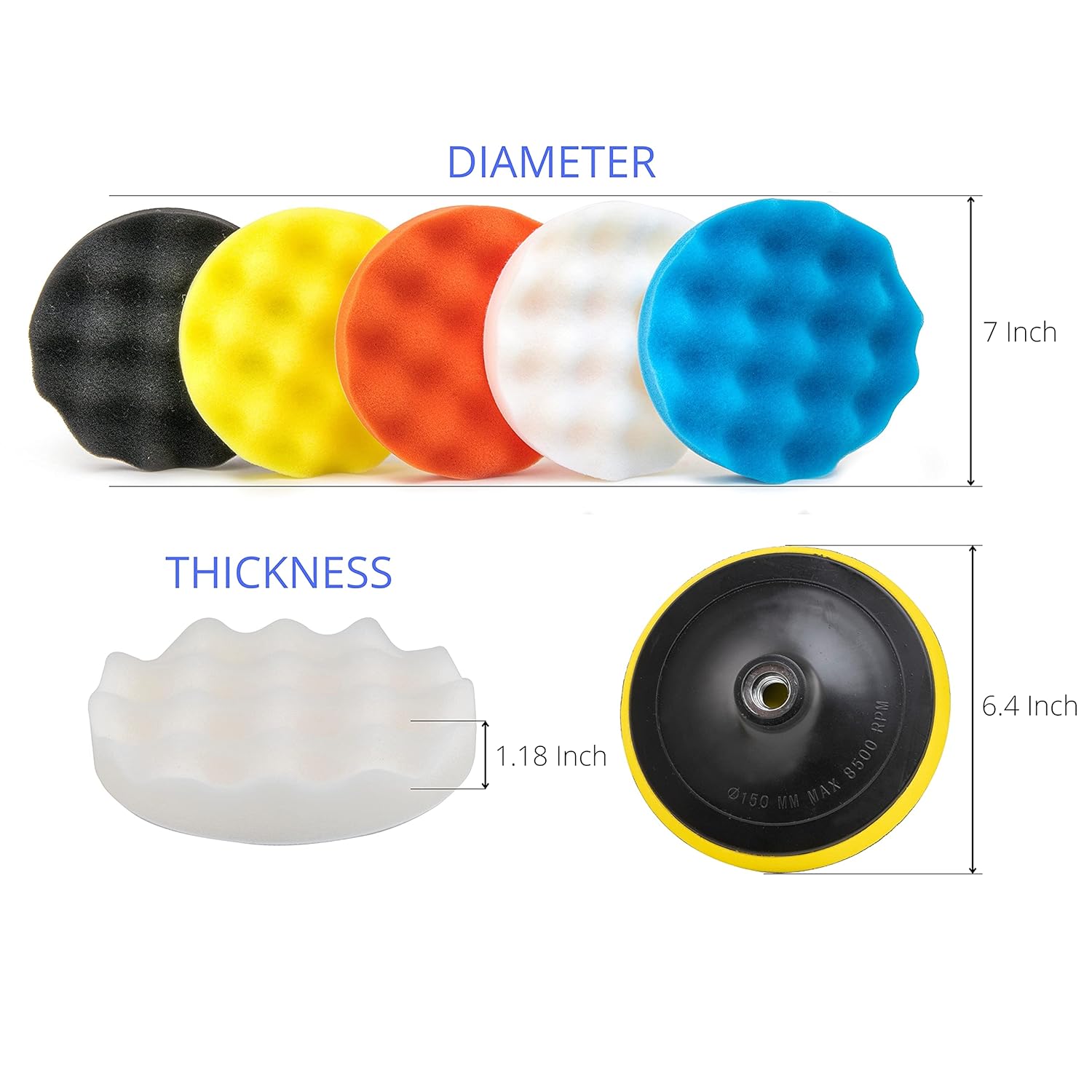 – Tamanhos: Inclui 5 almofadas de 6 polegadas (coarse, medium e fine) para diferentes aplicações.
