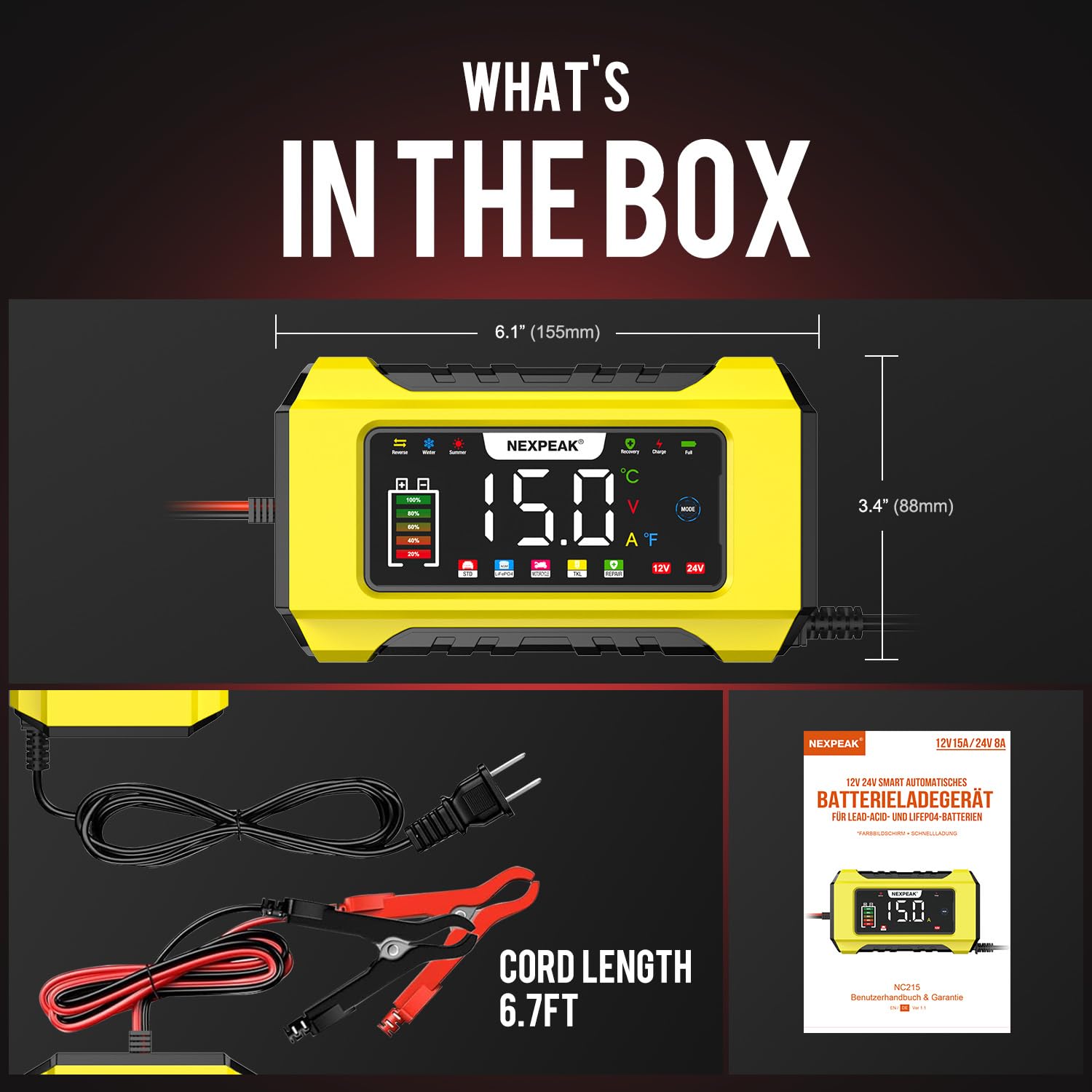 ### NEXPEAK NC215: Carregador de Bateria 15-Amp