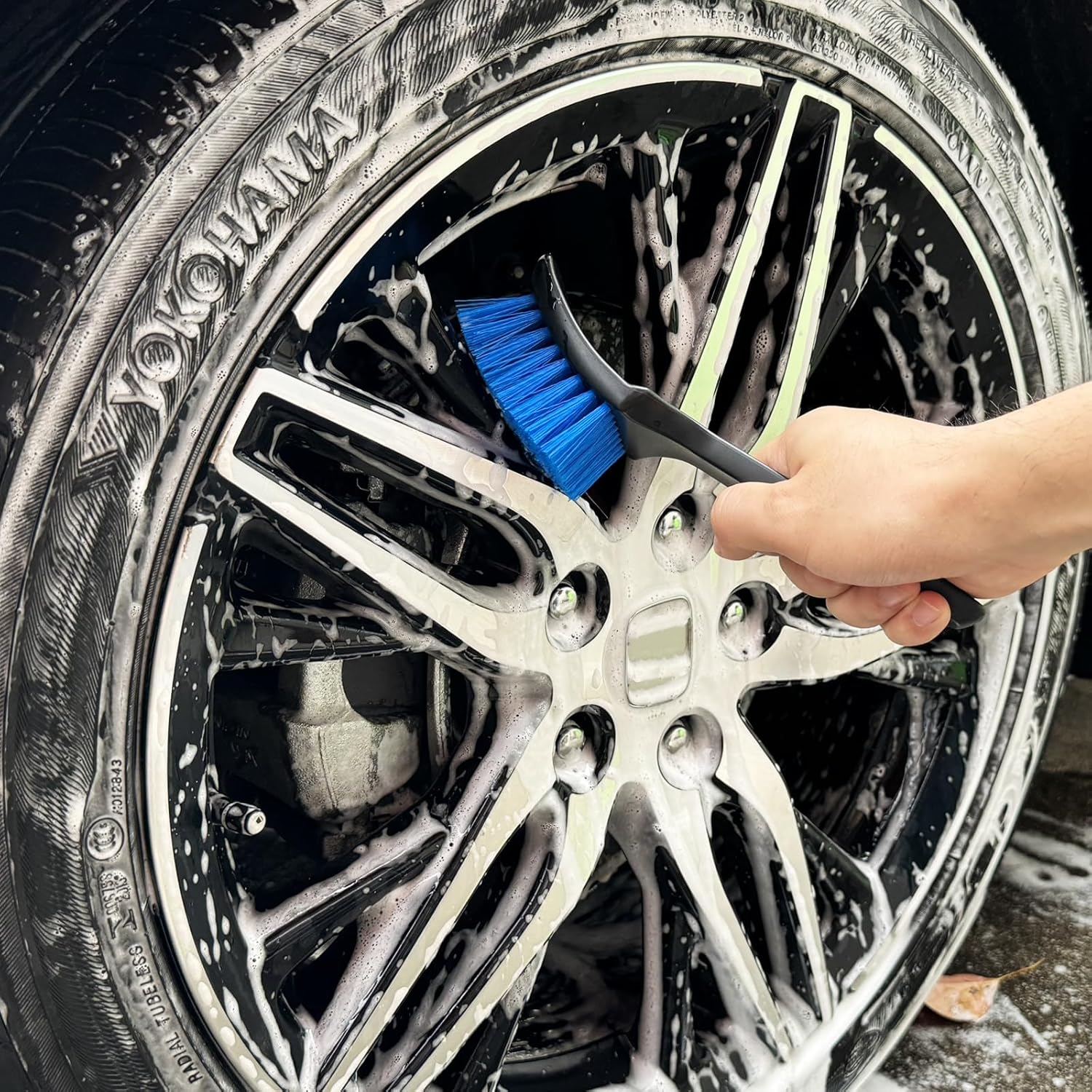 After my husband bought his new 2024 Ford Mustang Dark Horse, he put together a detailing kit to keep the car in pristine condition. This brush set comes in handy for the wheels as well as tires. You can reach all those nooks and crannies in the rims reach all those dirty areas. If you’re like he is, you go looking for where dirt could be hiding. These brushes are soft enough as to not scratch the rims and stiff enough to scrub the tires clean for application of tire treatment. The case is convenient to help keep the brushes together and separate from all the other detailing supplies he keeps in a large duffle bag.