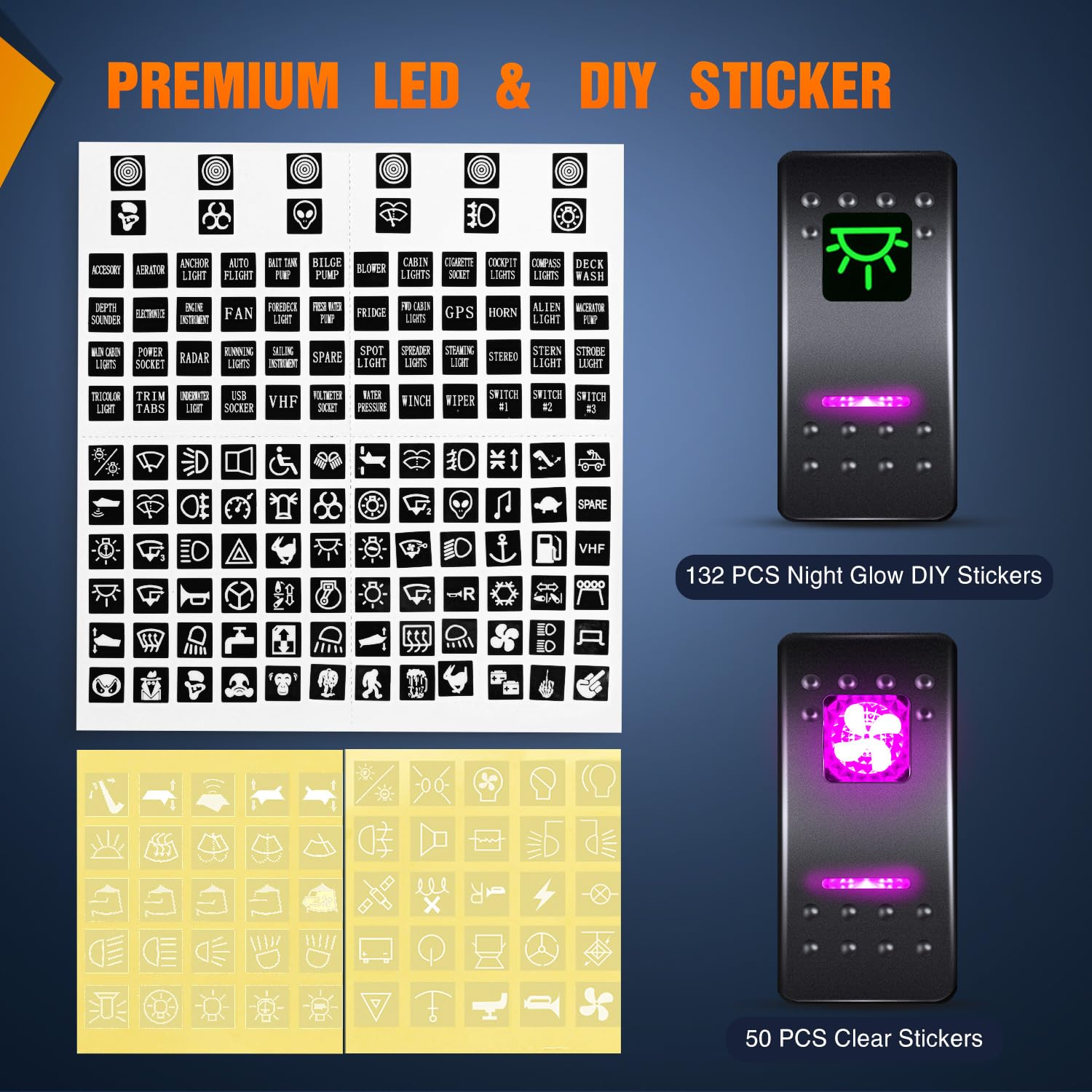 O design do interruptor é do tipo SPST (Single Pole Single Throw) com 5 pinos, o que facilita a instalação com um chicote de fiação pré-conectado. Isso significa que você pode instalar rapidamente o painel sem complicações, economizando tempo e esforço. Os interruptores são equipados com duas LEDs roxas que iluminam o painel, permitindo que você localize facilmente os interruptores mesmo em ambientes escuros. Além disso, o painel vem com adesivos DIY, permitindo que você personalize os interruptores de acordo com suas necessidades, proporcionando uma experiência de uso ainda mais satisfatória.