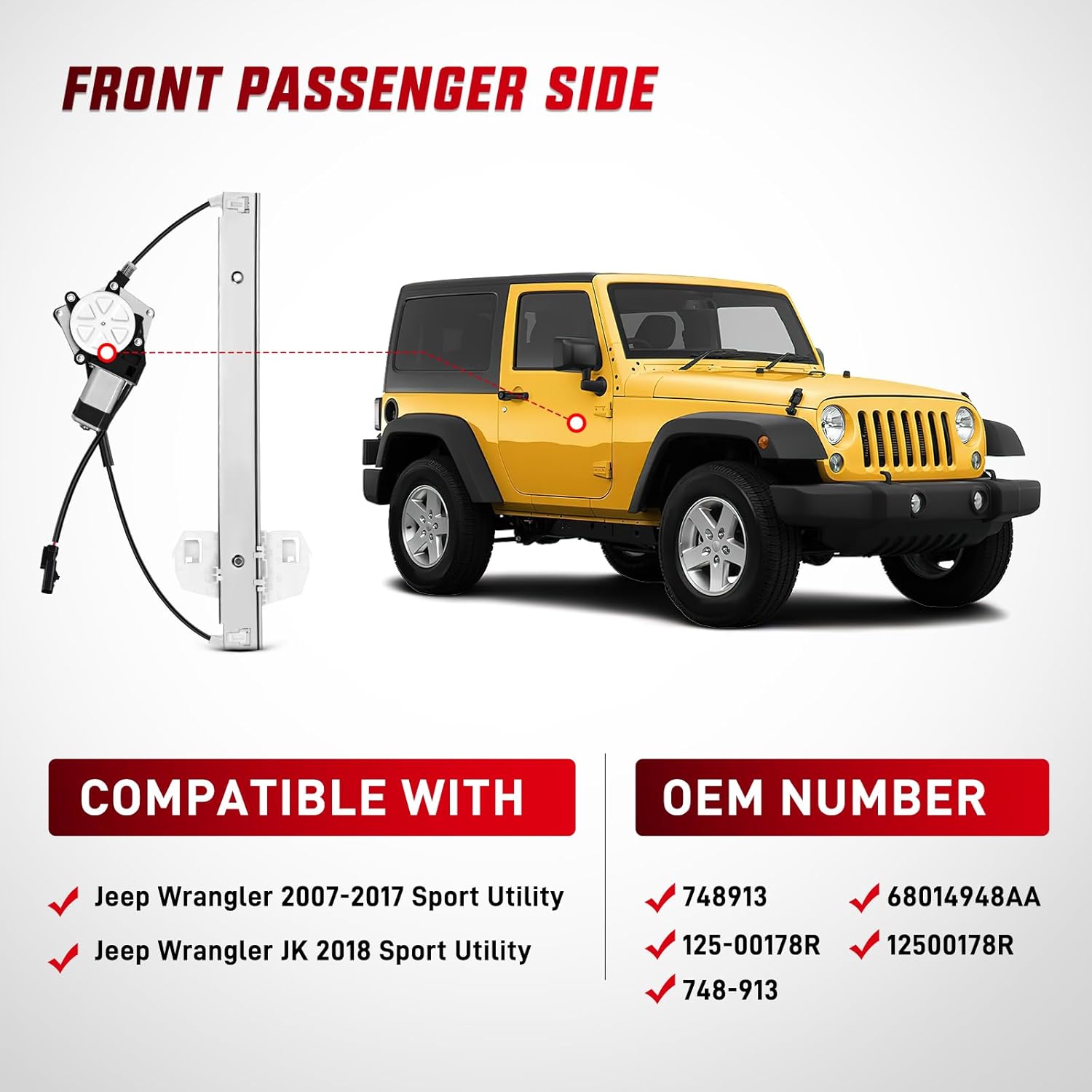 Regulador de Janela e Motor Nilight 748-913 Lado Passageiro Frontal Compatível com Jeep Wrangler 2007-2017 e Wrangler JK 2010-2018