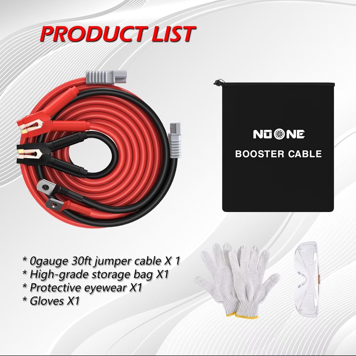- THE BRAND NAME YOU CAN TRUST: Além dos cabos de jumper de 0 gauge e 30 pés, você receberá: uma bolsa de transporte, óculos de proteção e luvas. O kit de cabos de carro NOONE oferece um serviço de produto de 3 anos. Se você tiver alguma dúvida, sinta-se à vontade para nos contatar.