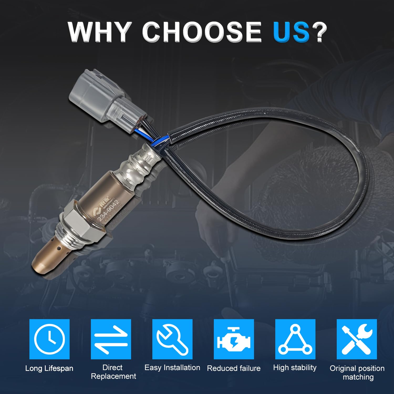 O Sensor de Oxigênio O2 Upstream 234-9042 é uma peça essencial para garantir o desempenho ideal do motor de veículos Toyota e Lexus, como o Camry, Sienna, Solara, Highlander, RX350, RX400h, ES330 e ES300. Composto por um material cerâmico interno de zircônia, este sensor apresenta um revestimento de platina porosa e uma proteção de carcaça metálica, que conferem resistência ao calor, ao desgaste e a altas temperaturas. Essa construção robusta não apenas melhora a durabilidade do sensor, mas também estende sua vida útil, tornando-o uma escolha confiável para motoristas que buscam eficiência e desempenho.