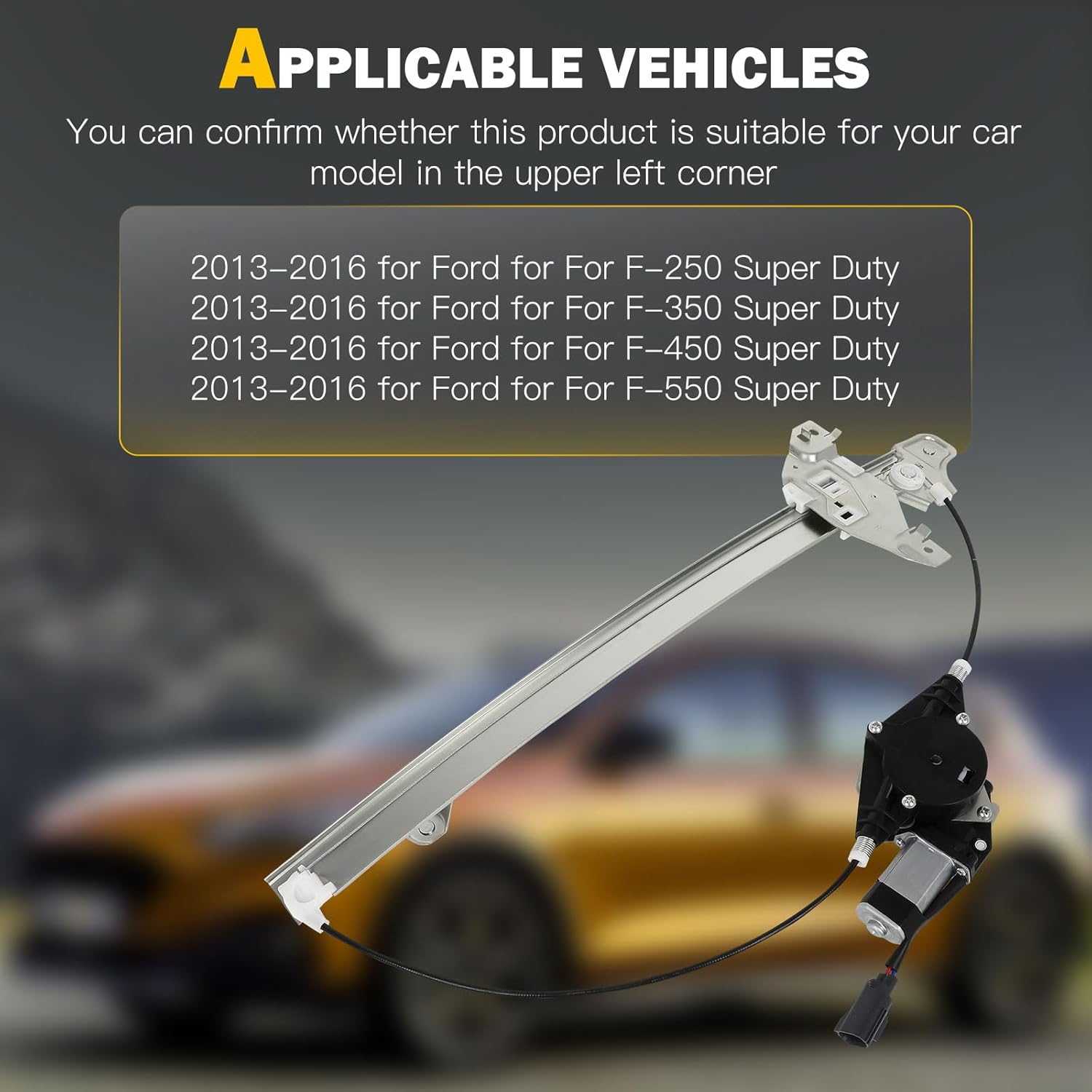 Ordered for a 2016 f250. The electrical connection isn’t the same, the mounting bolts for the motor do not align with the original mounting hole, and the track isn’t made with the same curve as the original which makes the glass itself hard to attach.