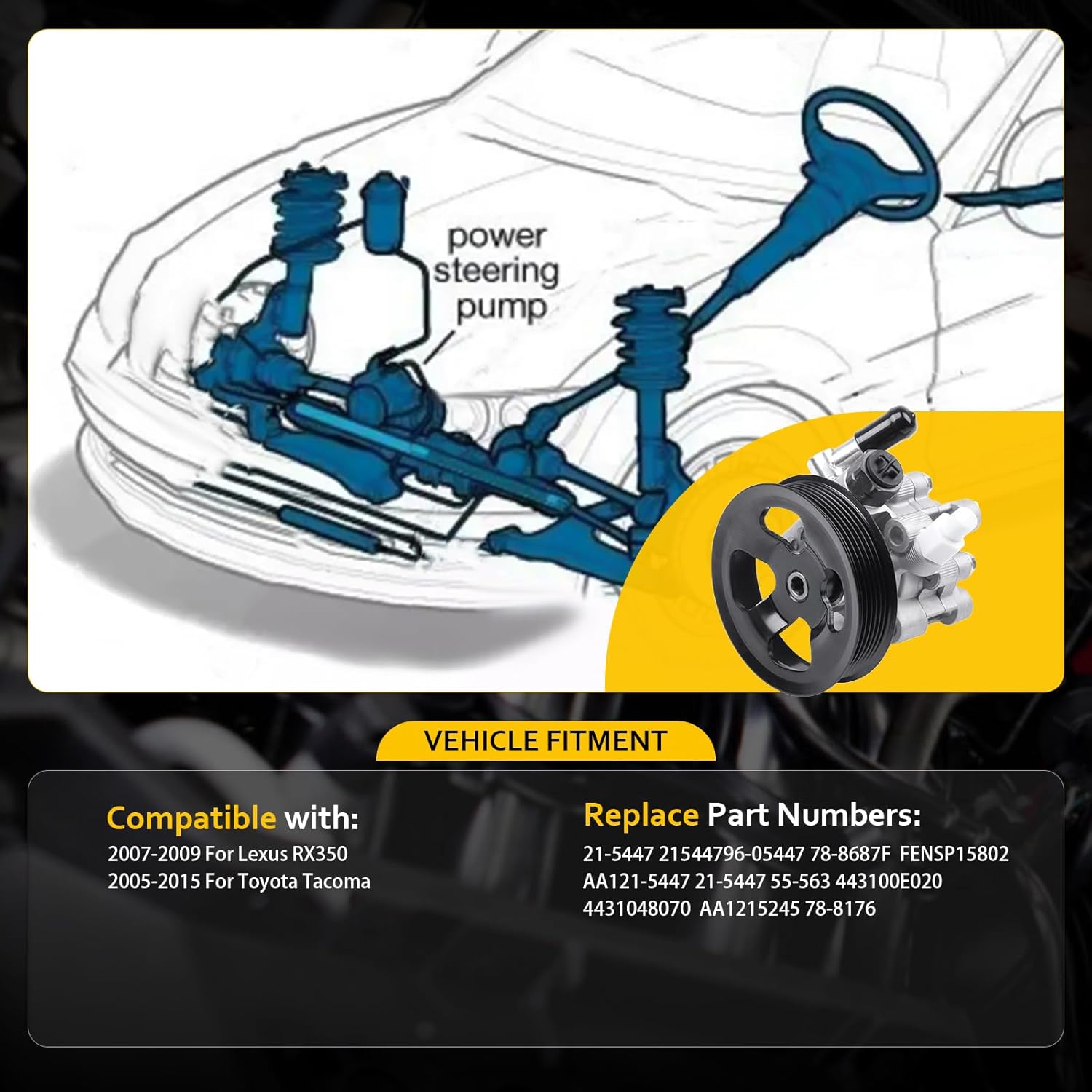 Bomba de Direção Hidráulica OCPTY Compatível com Lexus RX350 2007-2009 e Toyota Tacoma 2005-2015 – Peça 21-5447, 21544796-05447, 78-8687F, FENSP15802, AA121-5447