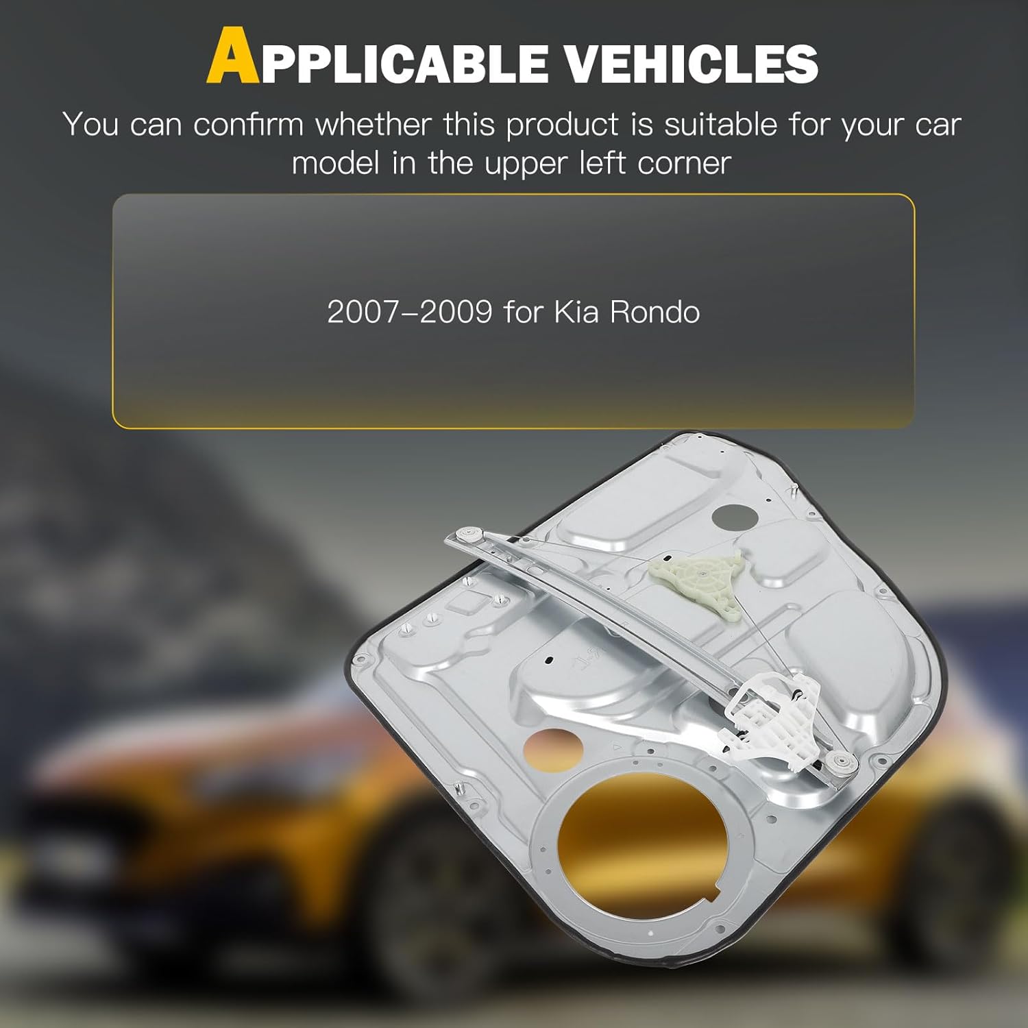 A instalação deste regulador de janela é simples e direta, tornando-o uma escolha perfeita tanto para entusiastas do “faça você mesmo” quanto para mecânicos profissionais. A compatibilidade com os modelos de Kia Rondo de 2007 a 2009 assegura que você tenha um produto que se encaixa perfeitamente no seu veículo, sem necessidade de adaptações complicadas.
