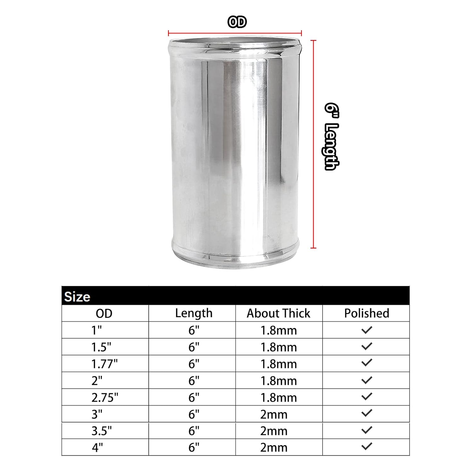 Com um design de conector de tubo reto, o adaptador apresenta uma aparência suave e livre de rebarbas, assegurando um manuseio seguro durante a instalação. As extremidades do adaptador são projetadas com saliências que aumentam a estabilidade, evitando vazamentos e garantindo uma conexão firme e segura. Este adaptador é universal, podendo ser cortado e soldado conforme necessário, o que o torna amplamente aplicável em sistemas de escape ou em materiais industriais, como tubos turbo personalizados, tubos de intercooler, tubos de admissão de ar e sistemas de resfriamento.