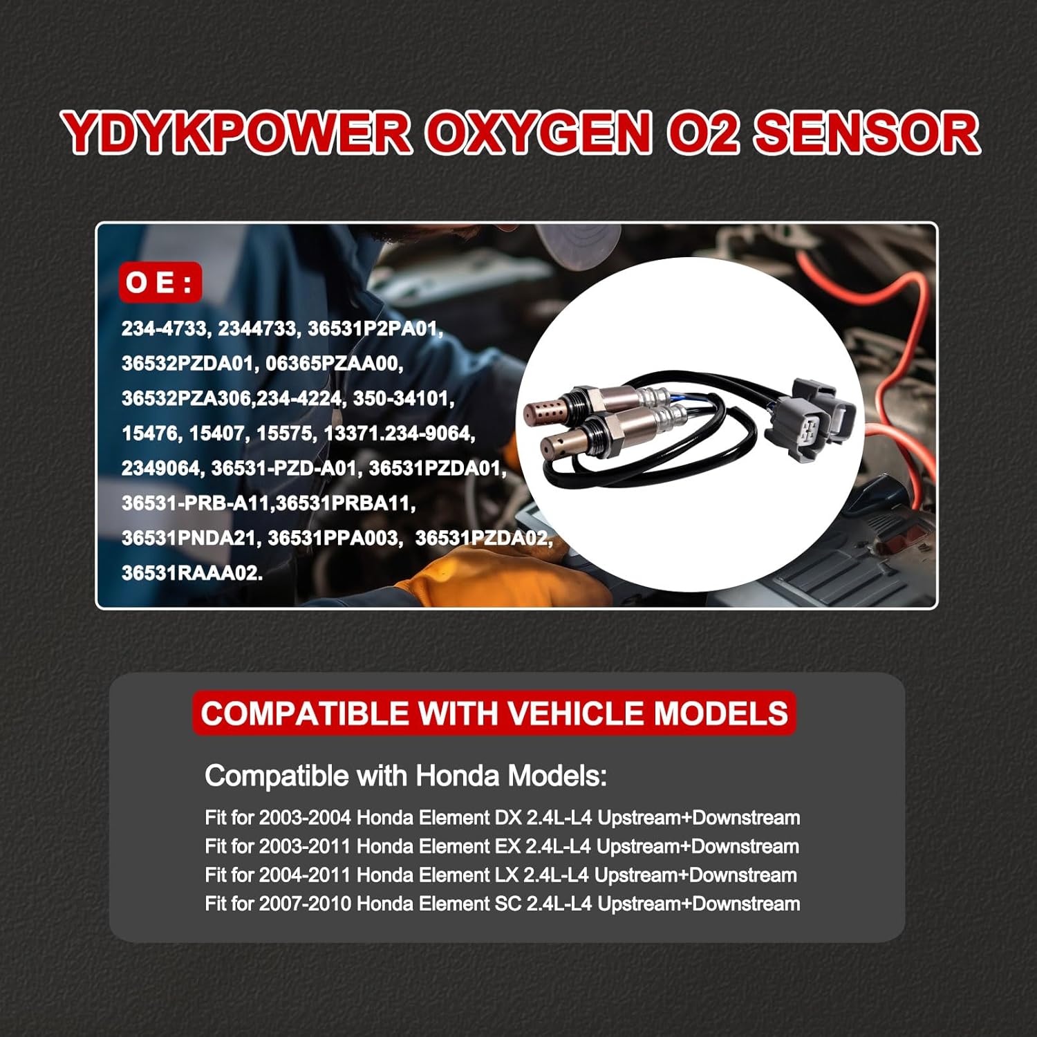 - Compatível com Modelos de Veículos: O sensor de oxigênio YDYKPOWER 234-4733 e 234-9064 é compatível com Honda Element EX Sport Utility 4-Door 2.4L (2003-2011), Element LX Sport Utility 4-Door 2.4L (2003-2011), Element SC Sport Utility 4-Door 2.4L (2007-2010) e Element DX L4-2.4L (2003-2004) Upstream/Downstream.