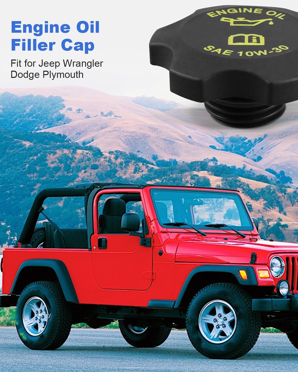 Resposta: A tampa de óleo foi projetada especificamente para Jeep Wrangler, Grand Cherokee, Liberty e modelos Chrysler, Dodge e Plymouth. Para garantir a compatibilidade, verifique o número da peça do fabricante.