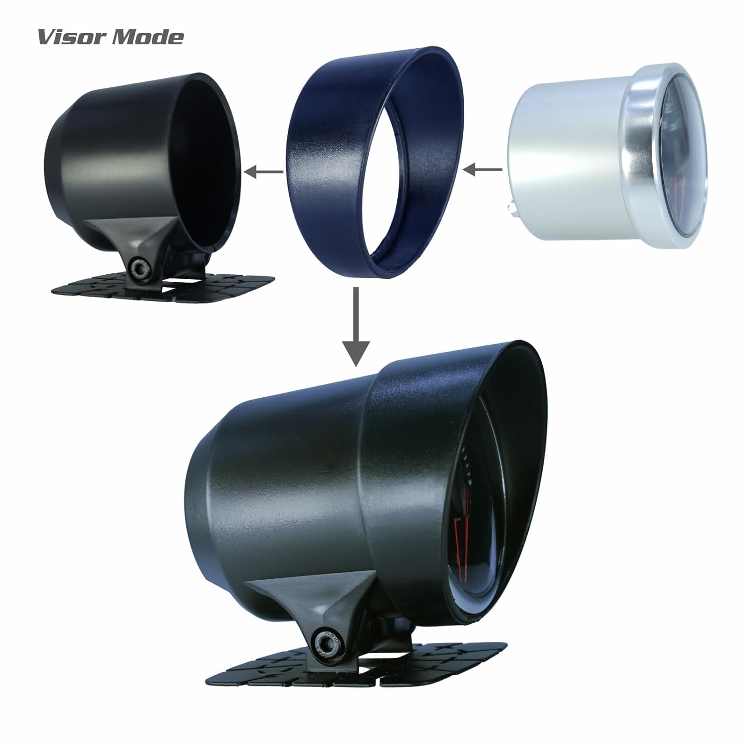 – Diâmetro: 2-1/16” (52mm) – compatível com a maioria dos painéis de veículos.