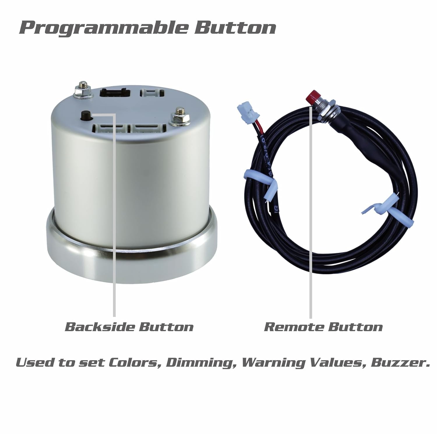O manômetro é equipado com um sensor elétrico de cobre com rosca 1/8 BSPT, que proporciona uma faixa de medição de 0-100 PSI. A tecnologia de chip cerâmico interna assegura medições precisas e confiáveis, permitindo que você monitore a saúde do motor com confiança. Além disso, o manômetro oferece uma ampla gama de opções de personalização, com 10 cores sólidas e uma cor cíclica, permitindo que você ajuste a iluminação de acordo com o estilo do seu painel. Os modos diurno e noturno, com 5 níveis de brilho ajustáveis, garantem que você tenha uma visibilidade ideal em qualquer condição de iluminação.