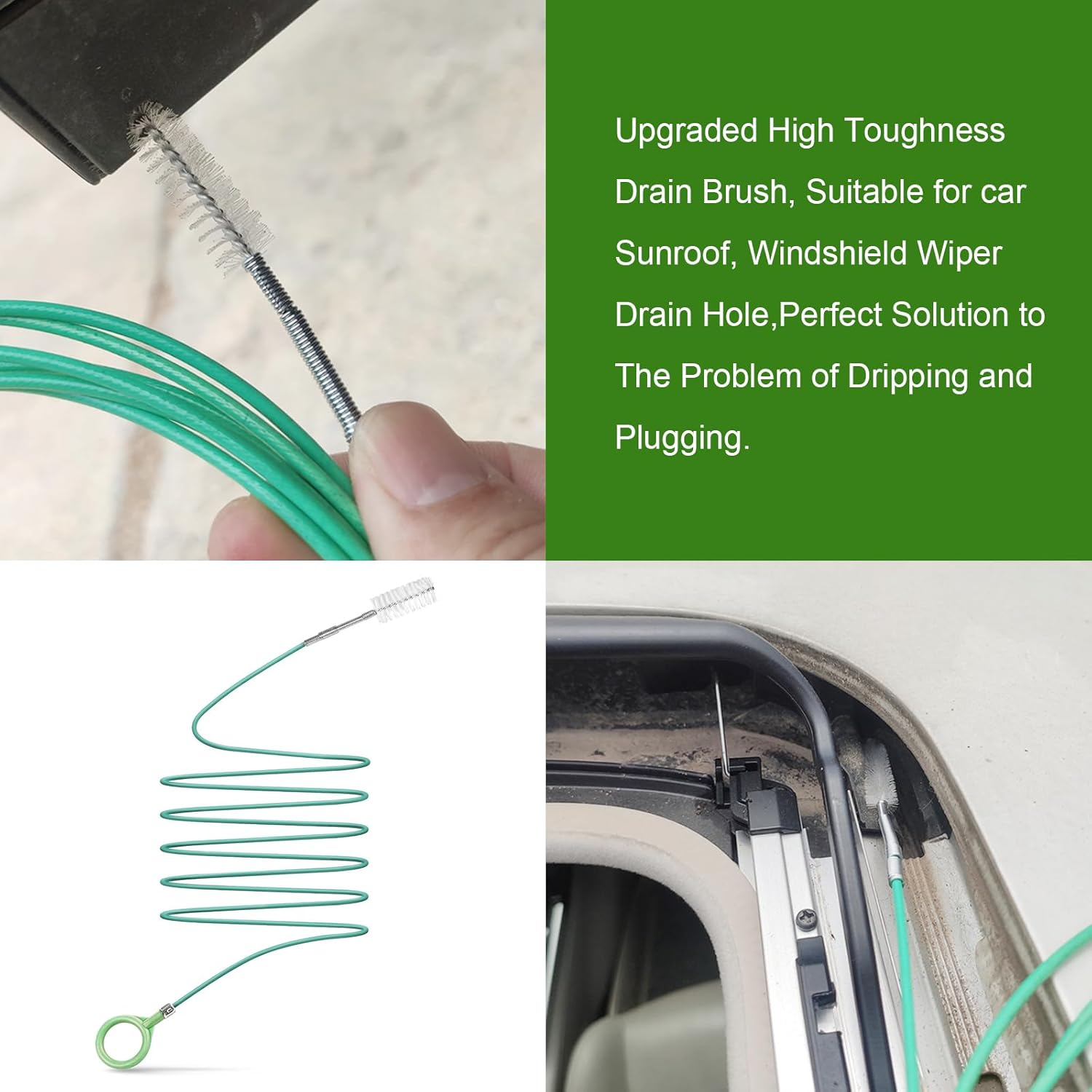 Este limpador de drenos apresenta uma construção robusta e flexível, permitindo que você desobstrua obstruções em diversos tipos de tubulações longas e finas. A escova é ideal para limpar não apenas drenos de teto solar, mas também orifícios de dreno de limpadores de para-brisa, drenos de refrigeradores, aquários, mangueiras e tubos de vidro. Com a capacidade de remover folhas, sujeira, teias de aranha e detritos, este produto é reutilizável e se destaca pela sua praticidade.