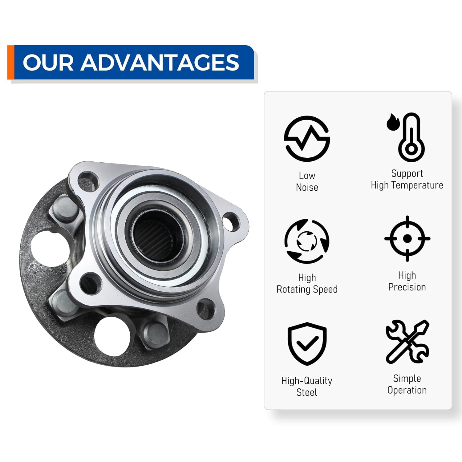 - Qualidade Incrível: O conjunto é resistente à corrosão e possui uma durabilidade excepcional. O cubo de roda é pré-revestido com lubrificante, e os parafusos de roda vêm com um revestimento protetor que ajuda a prevenir ferrugem e corrosão.