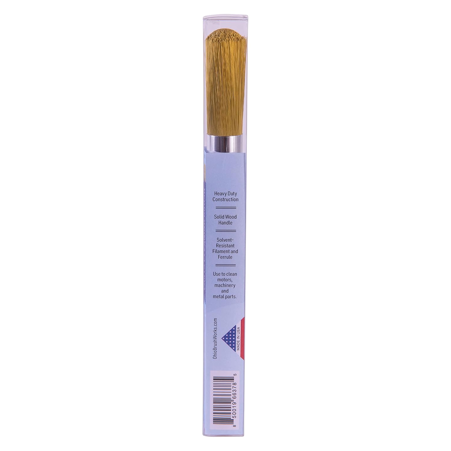 Great brush that stands up to scrubbing, digging and powering out grease without loosing its shape. I cleaned an engine case in a solvent tank and the bristles never lost their straightness and the handle even stayed the same color in dirty solvent. Will last a long time.
