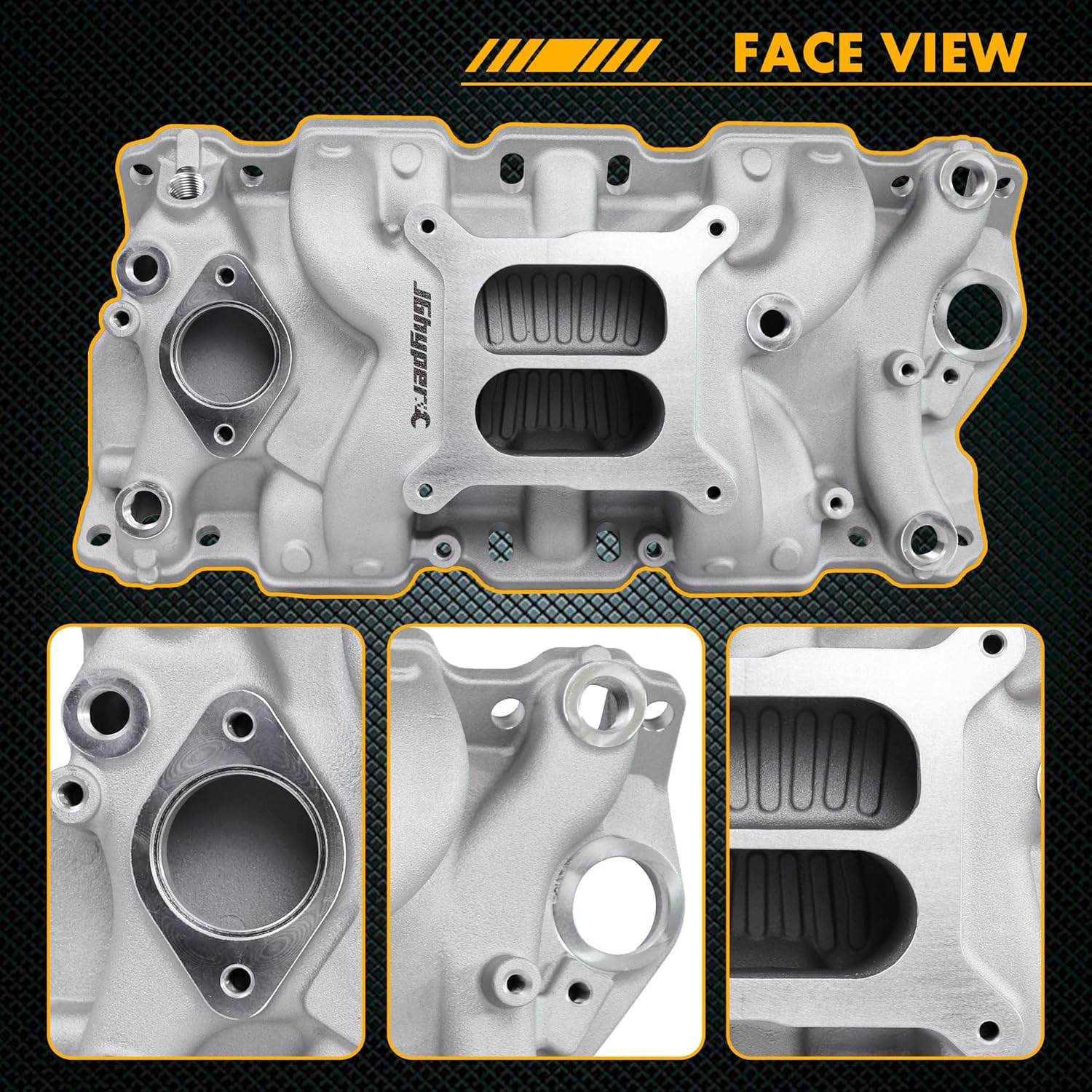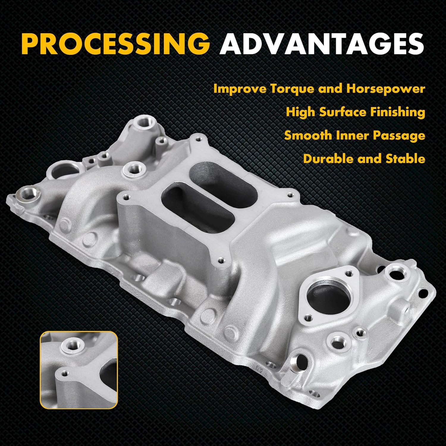 O coletor de admissão é projetado para montagem de carburador de 4-barrel com furo quadrado, o que facilita a instalação e maximiza o desempenho do motor. Além disso, o acabamento natural do coletor proporciona um visual clean e sofisticado, ideal para quem valoriza tanto a performance quanto a estética do veículo.