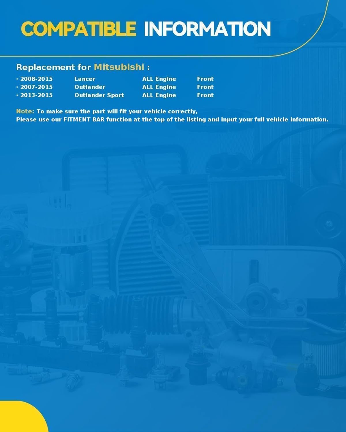 – Compatibilidade: Projetado para Lancer (2008-2017), Outlander (2008-2018) e Outlander Sport (2011-2017).