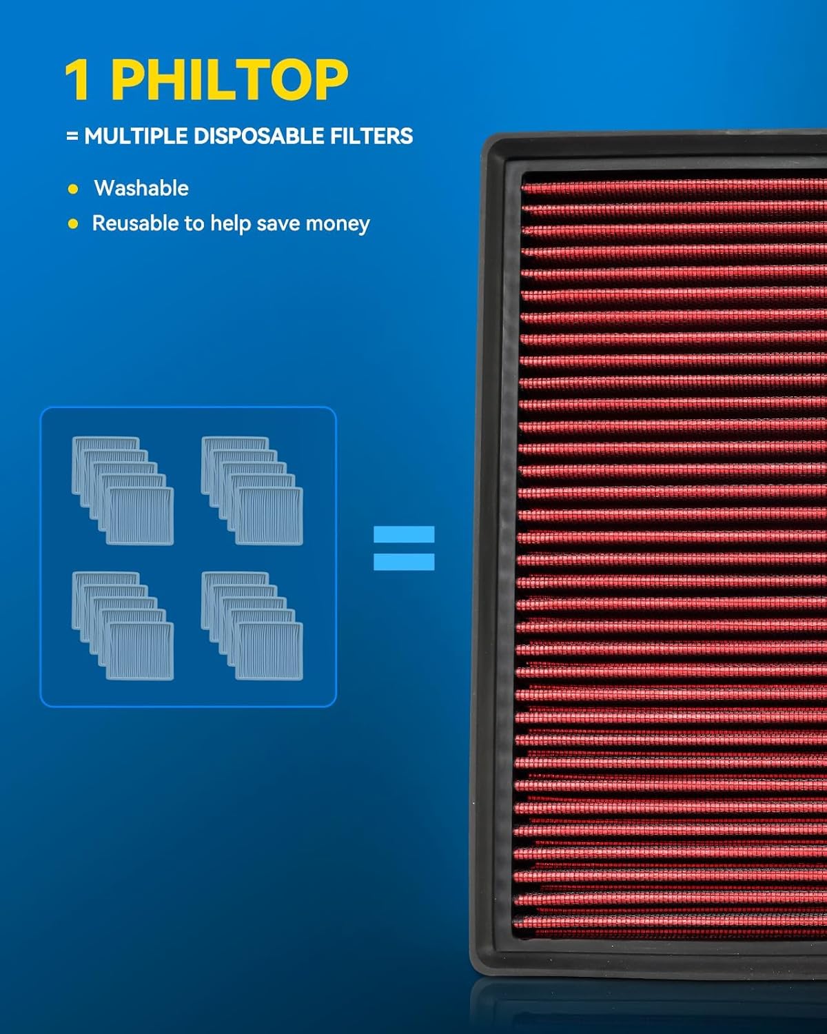 Additionally, the PHILTOP Engine Air Filter is designed to last a long time. It boasts a high dirt-holding capacity, meaning it can handle more debris before needing a replacement. This long-lasting feature makes it a cost-effective option for vehicle maintenance.