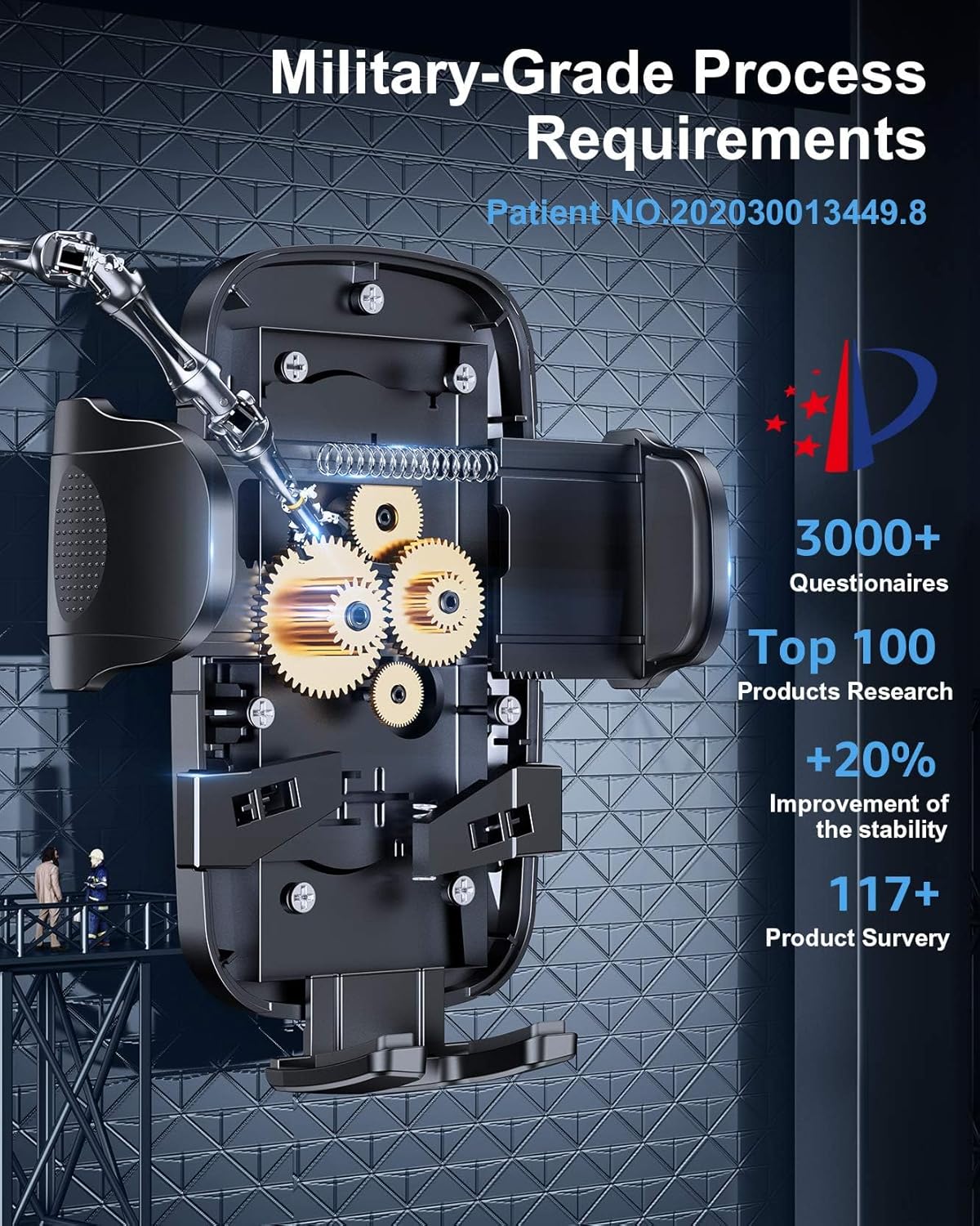 – Estabilidade e Robustez de Grau Militar: O suporte utiliza um design de fixação triangular que mantém seu celular seguro, mesmo em estradas irregulares.