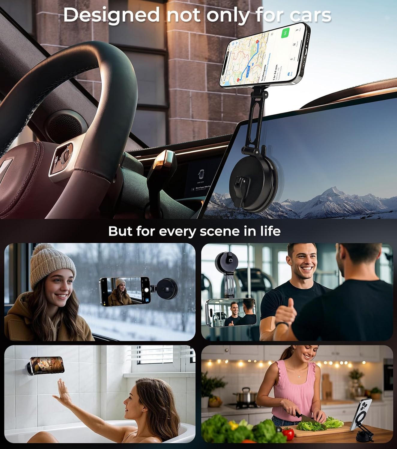 The vacuum suction cup is a twist-lock mechanism that has a really firm grip, even though bumps. It’s easy to uninstall and install in different locations without leaving sticky goo. The Qi2 fast charging is as fast as any official MagSafe chargers. The 360° rotation functionality makes it easy to twist and turn it to all angles. Its lightweight too thanks to the aluminum alloy. I think the quality may justify the cost of it easily.I would suggest to not mount it close to a location that would block a vent.