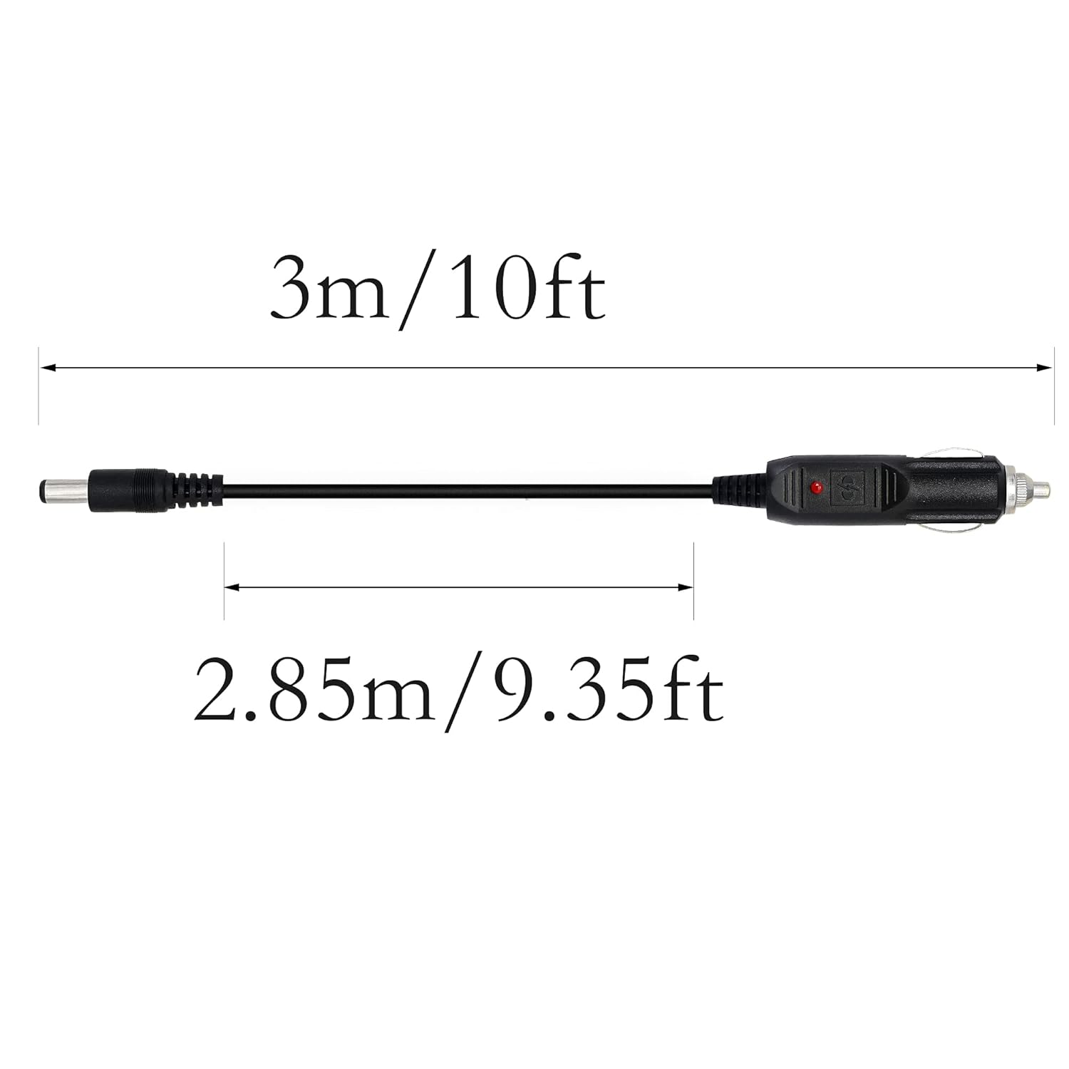 Carregador de carro PNGKNYOCN12V DC com cabo de 18AWG, ideal para fornecer energia a câmeras, CFTV e refrigeradores. Possui plugue macho para isqueiro de carro (DC 5.5mm x 2.5mm) e comprimento de 10 pés, oferecendo flexibilidade e alcance. É robusto e confiável, garantindo uma conexão estável e segura durante o uso. Perfeito para quem precisa de uma fonte de energia portátil e eficiente em veículos.