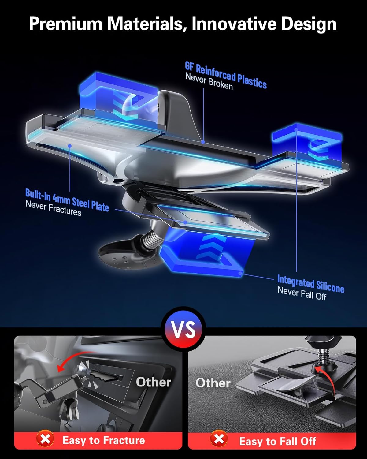 – Força Magnética Ideal: Após milhares de testes, encontramos a força magnética ideal para este suporte. Ele mantém seu celular firmemente no lugar, permitindo que você coloque e retire o telefone com facilidade, sem dificuldades após a adsorção.