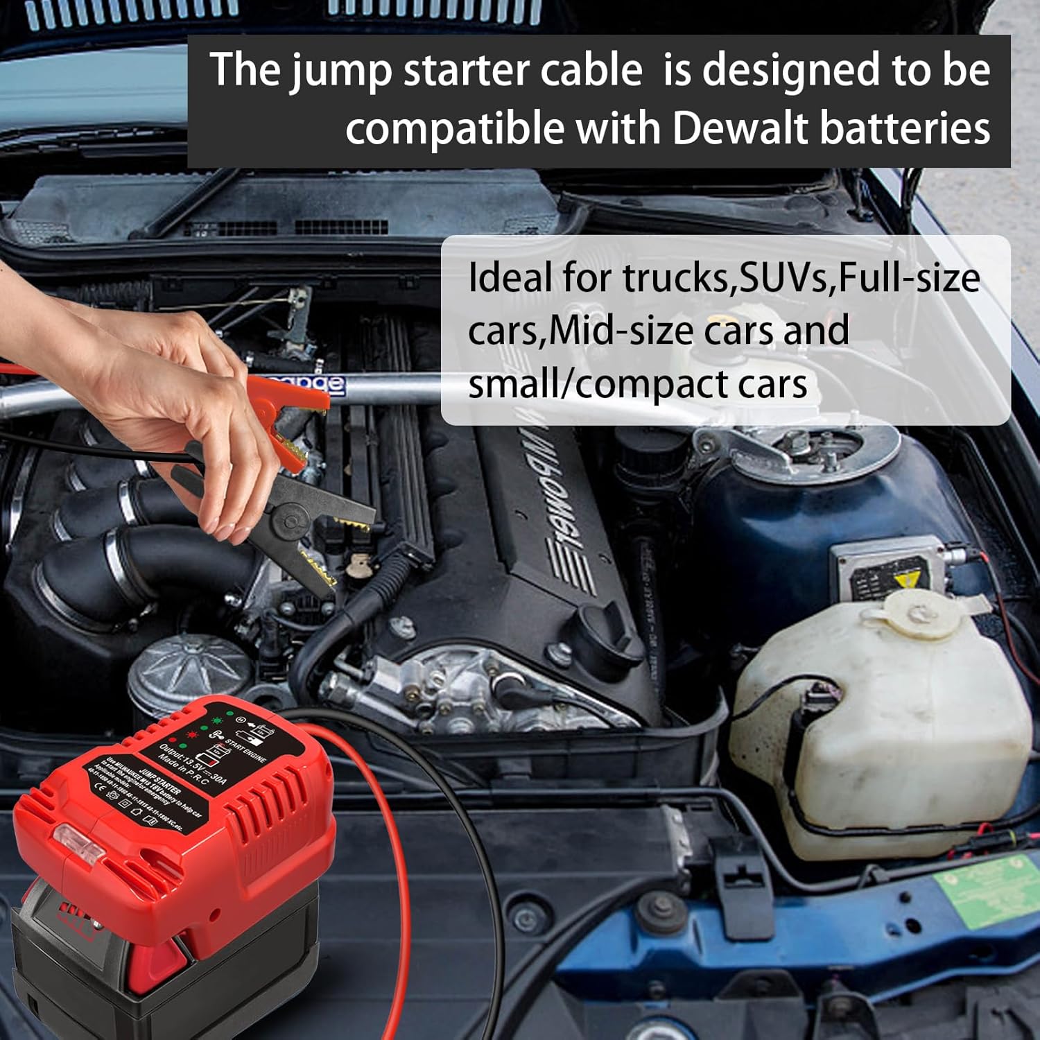 O Adaptador de Cabo de Bateria para Partida de Carro Portátil é a solução ideal para quem busca praticidade e eficiência na hora de dar partida em veículos. Compatível com as baterias de lítio Milwaukee M 18 de 18V, como os modelos 48-11-1820, 48-11-1822, 48-11-1840, 48-11-1850, 48-11-1852, 48-11-1860 e 48-11-1862, este adaptador é projetado para facilitar o processo de partida de veículos com motores de até 3.5 litros.