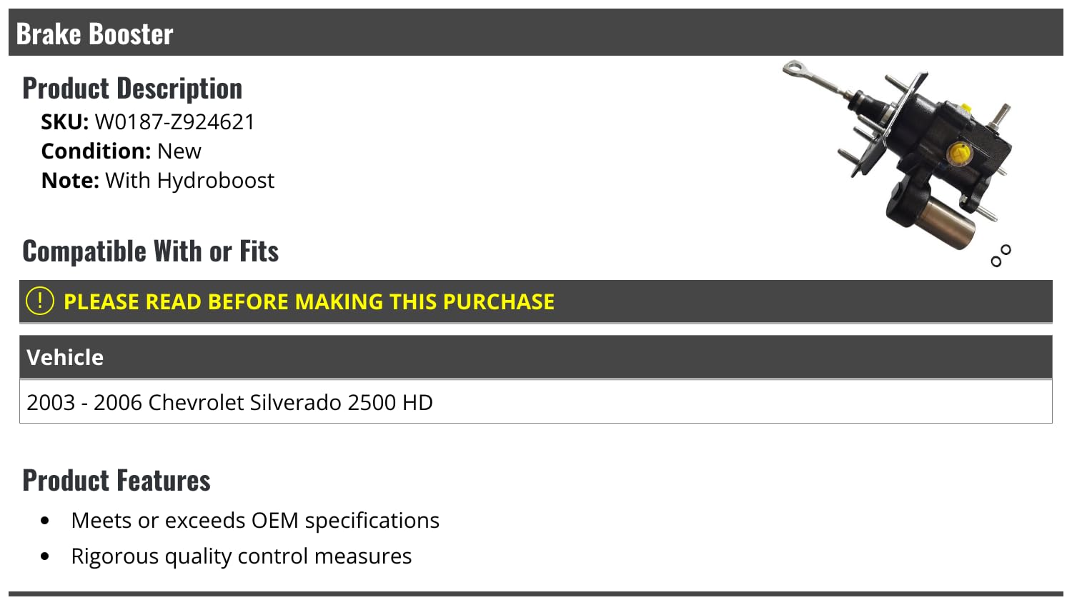- Compatível com: Chevy Silverado 2500 HD 2006 (com Hydroboost)