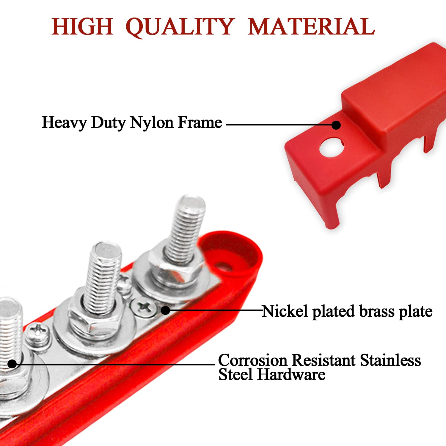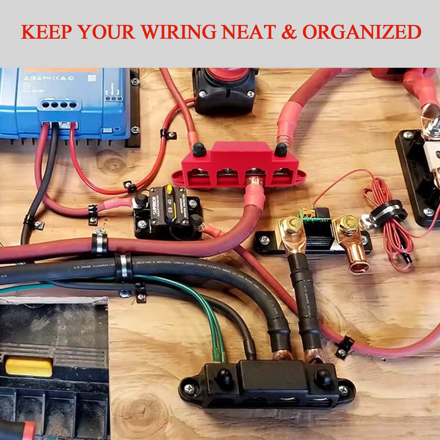 Este bloco de distribuição de 4 postes é uma excelente solução para a coleta de circuitos em sistemas de energia de carros, RVs, iates, caravanas e barcos. O design do bloco mantém os cabos largos seguros, organizando os fios de maneira eficiente e prática.