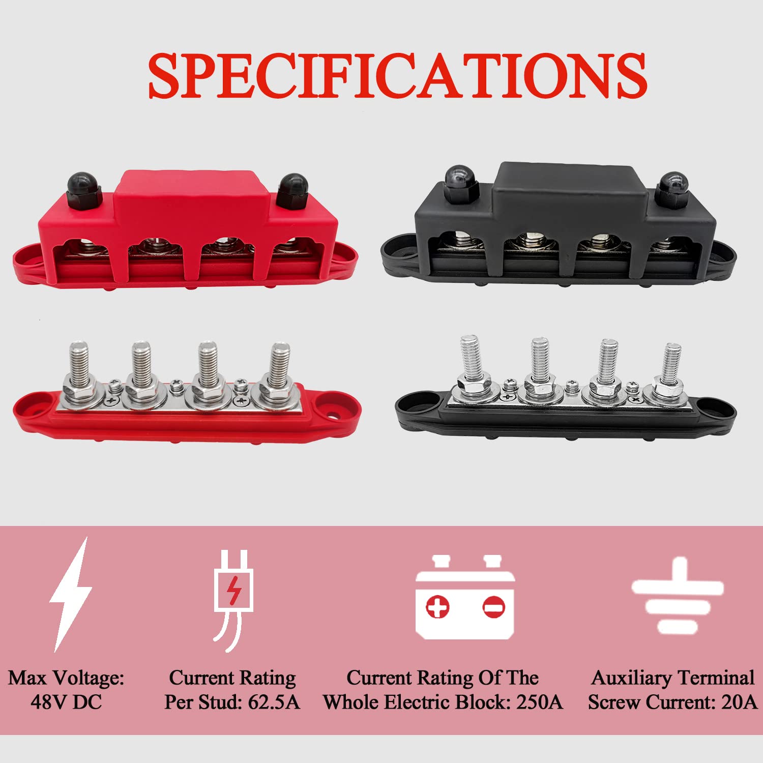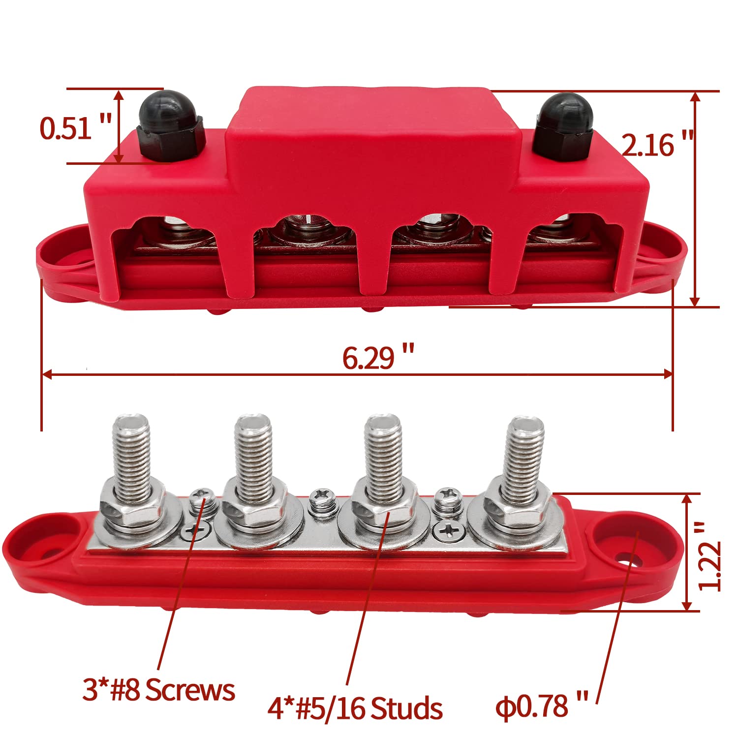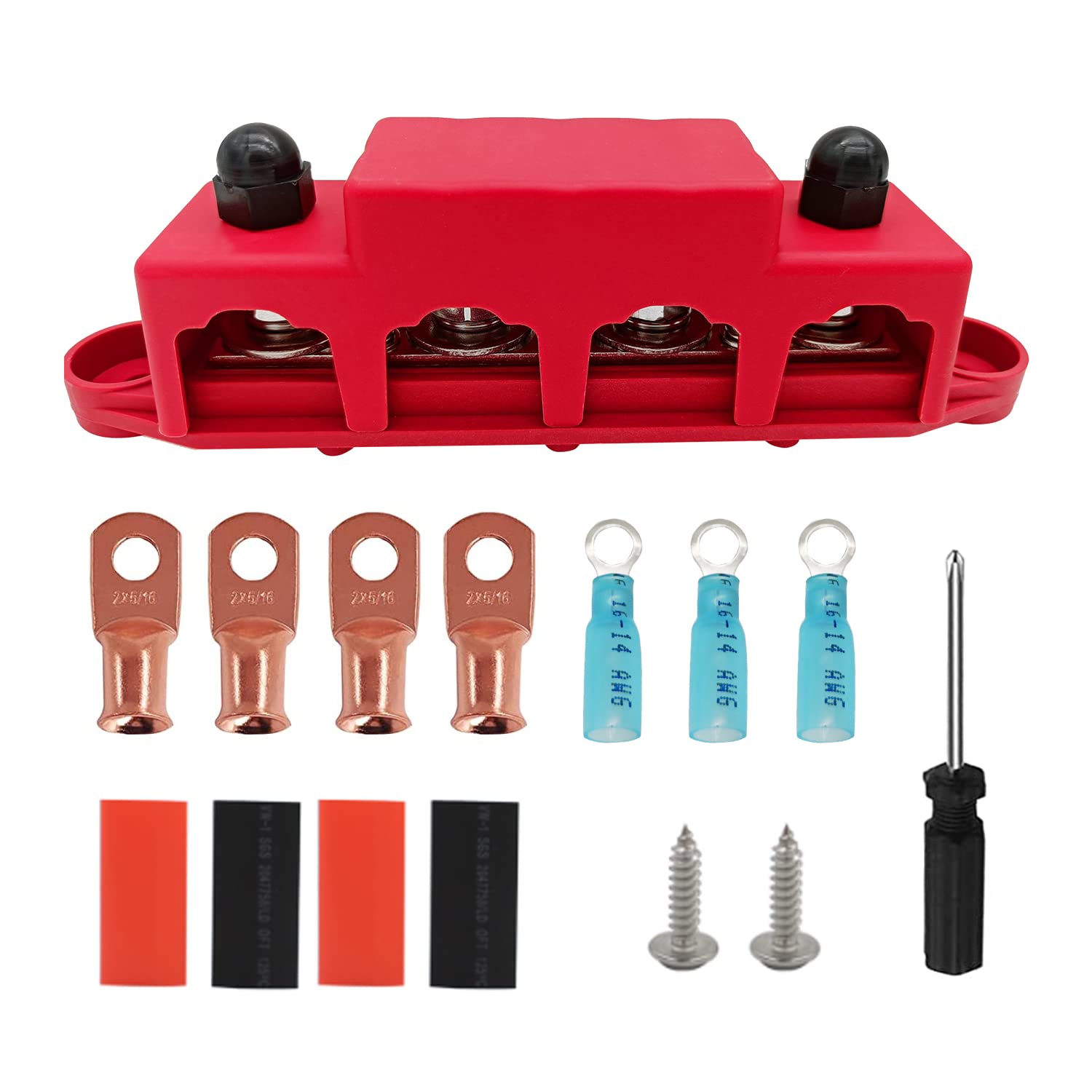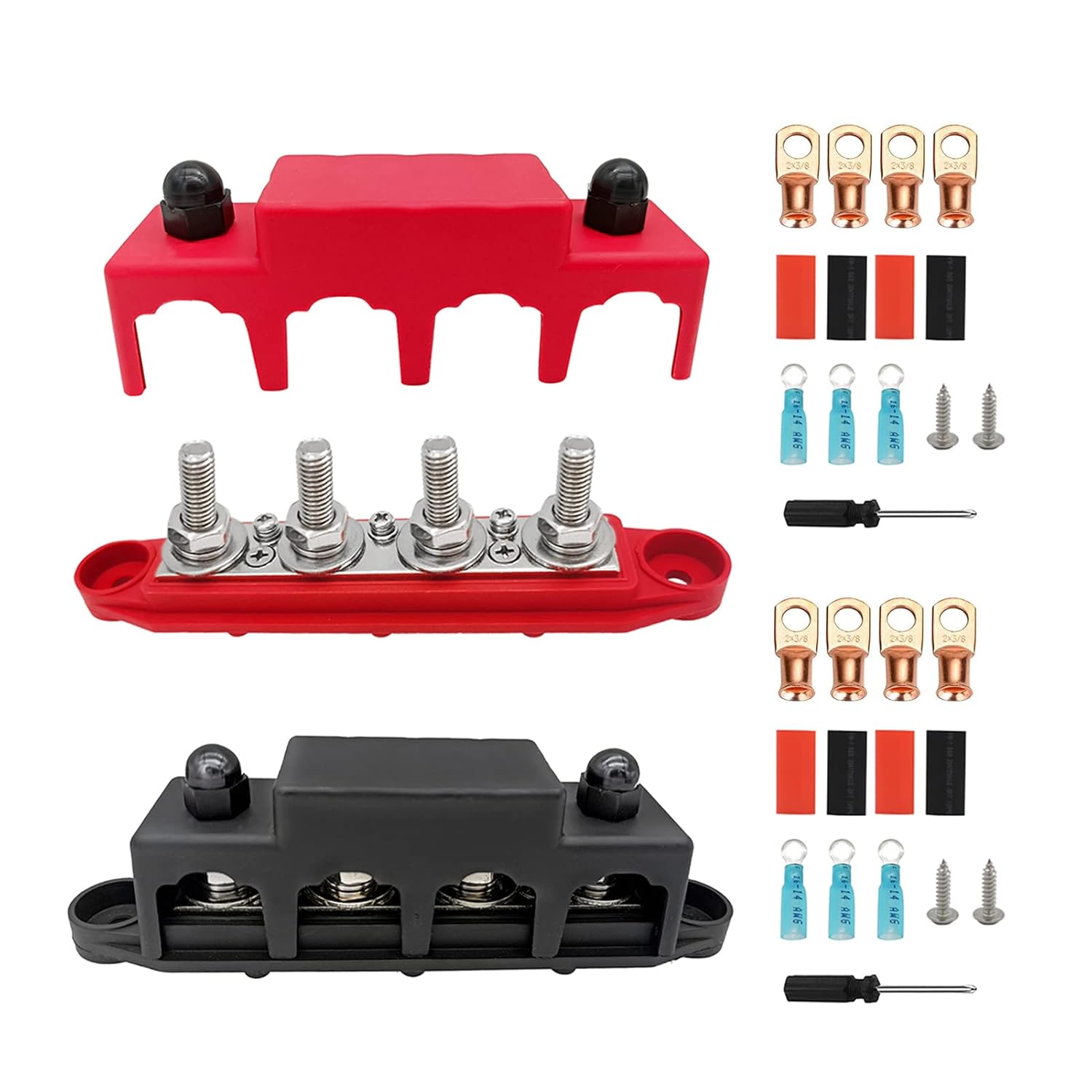 O Power Distribution Block Bus Bar 3/8″ Terminal Stud 4 Post é a solução ideal para quem busca eficiência e segurança em sistemas elétricos de veículos marinhos, automotivos e de energia solar. Com um design robusto e funcional, este bloco de distribuição de energia é projetado para suportar até 250 Amperes e uma tensão máxima de 48V DC, tornando-o perfeito para aplicações em RVs, barcos, iates e sistemas de energia em caravanas.