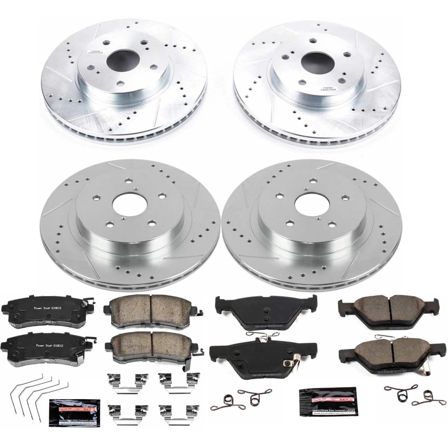 Descrição do Produto: Power Stop K7357 Front and Rear Z23 Carbon Fiber Brake Pads with Drilled