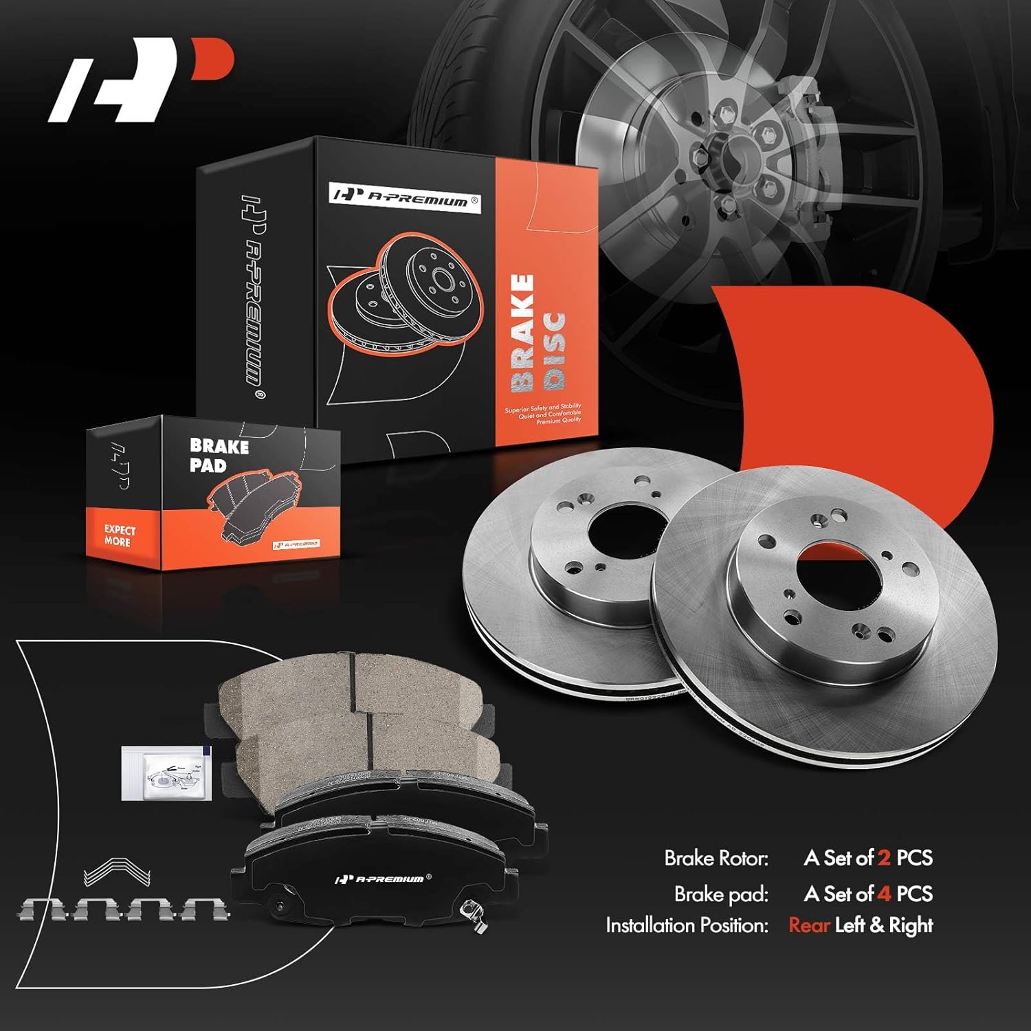 Descrição do Produto: A-Premium 10.31 inch (262mm) Front Vented Disc Brake Rotors Ceramic Pads Kit
