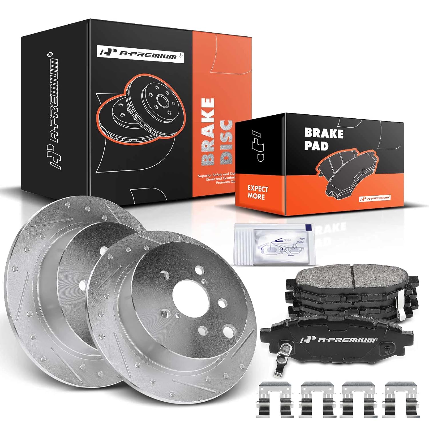 Descrição do Produto: A-Premium 10.78 inch (274 mm) Rear Solid Disc Brake Rotors Ceramic Pads Kit
