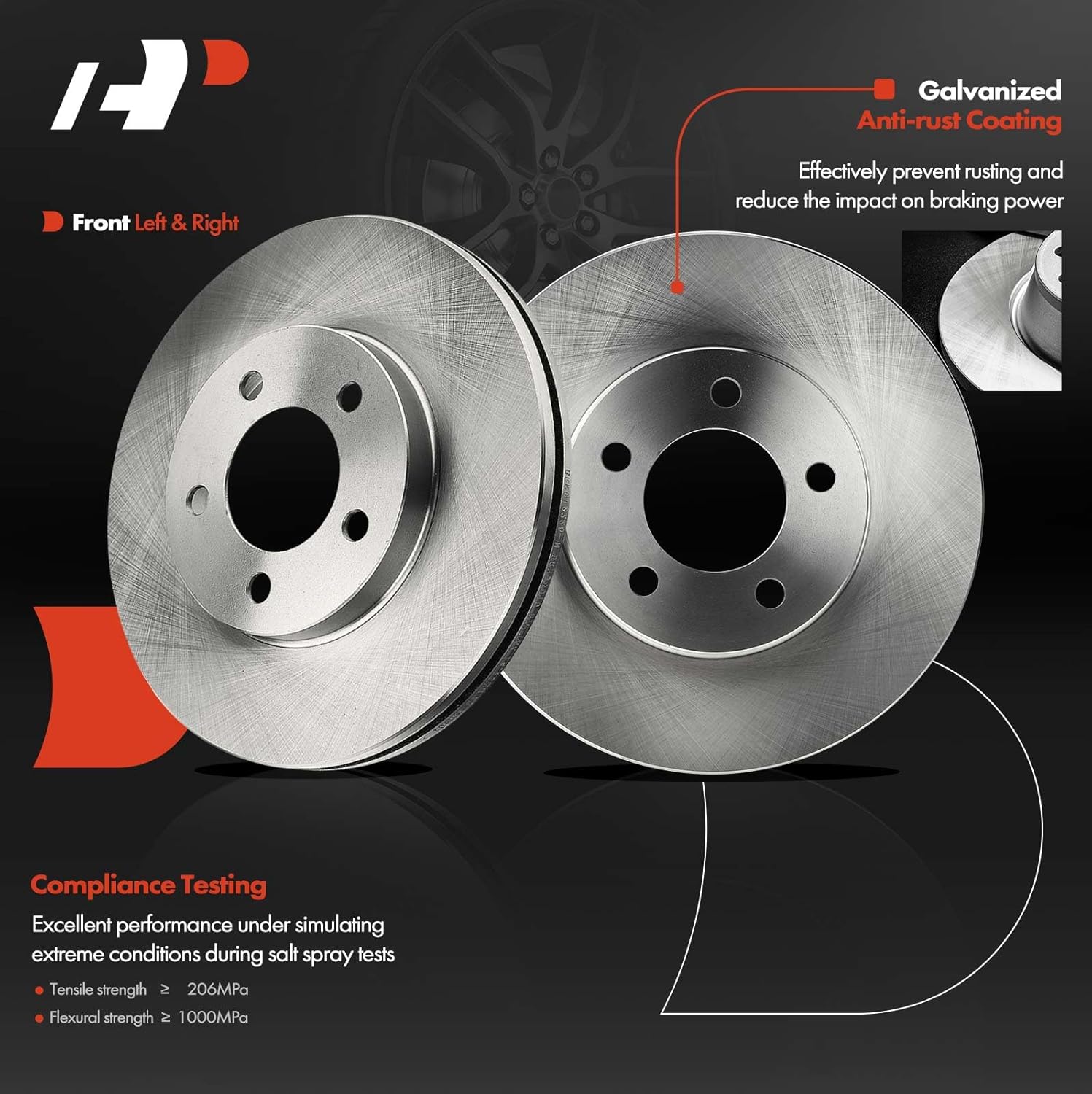 Descrição do Produto: A-Premium 10.87 in (276 mm) Front Vented Disc Brake Rotors Ceramic Pads Kit