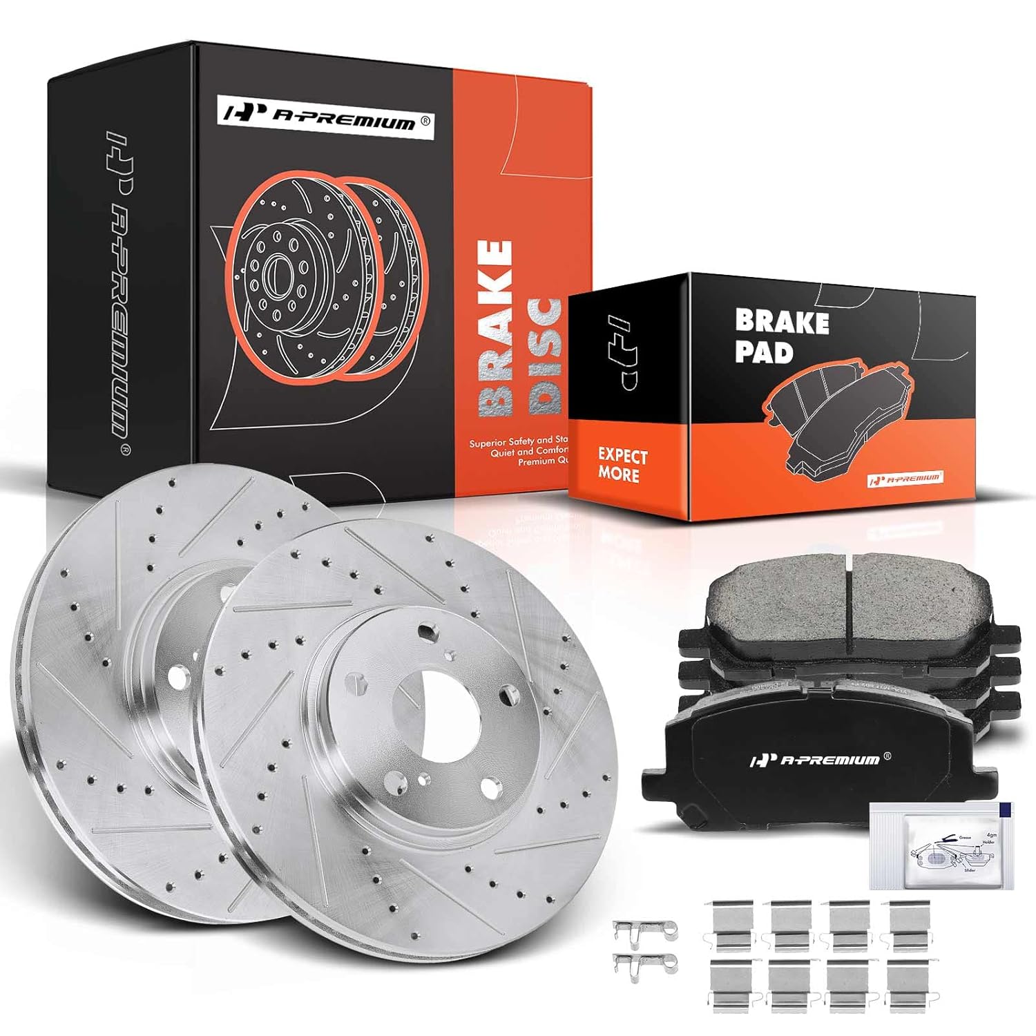 Descrição do Produto: A-Premium 11.65 inch (296mm) Front Vented Disc Brake Rotors Ceramic Pads Kit