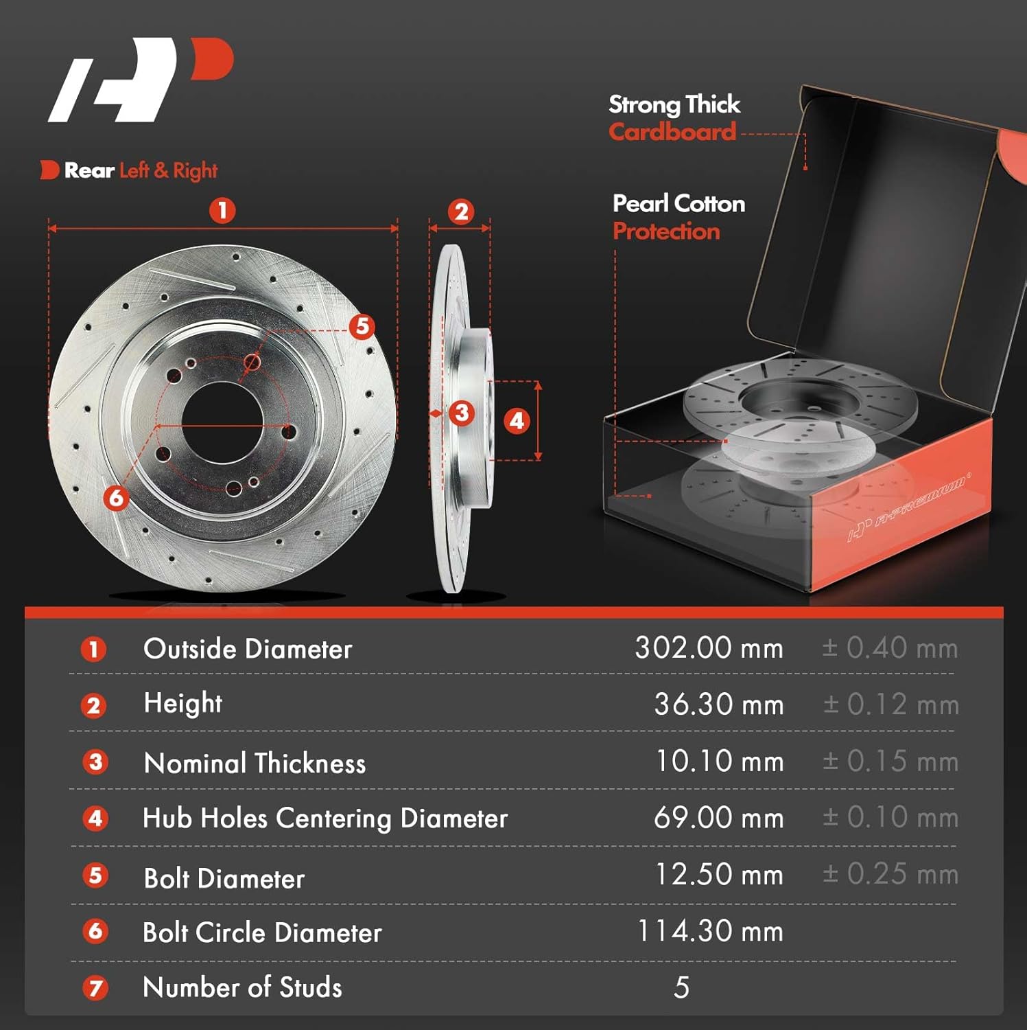 6 avaliações para Kit de Discos de Freio Traseiros A-Premium 11.89″ (302 mm) Perfurados e Canalizados com Pastilhas Cerâmicas Compatível com Mitsubishi Outlander 2014-2018 e Outlander Sport
