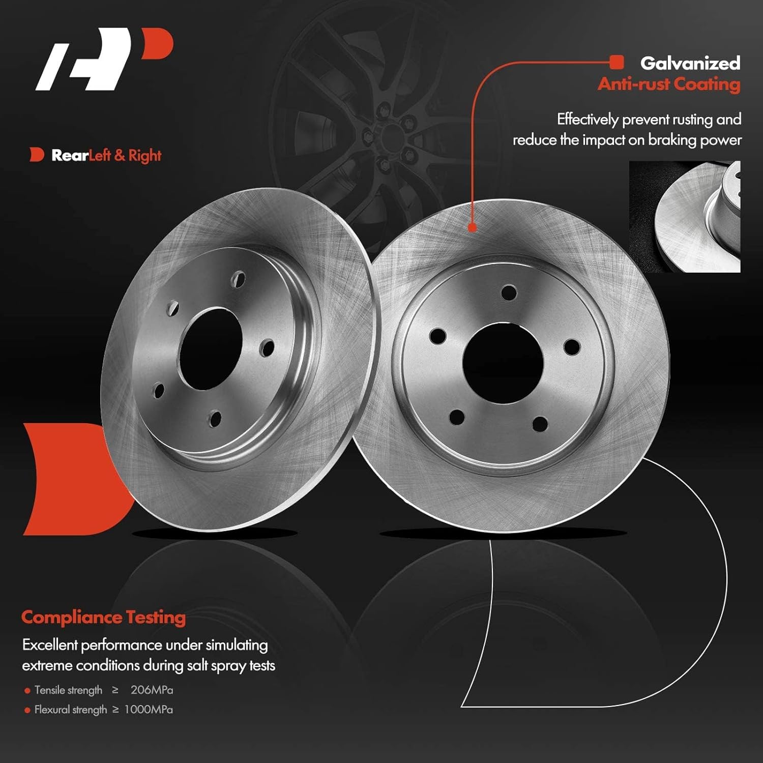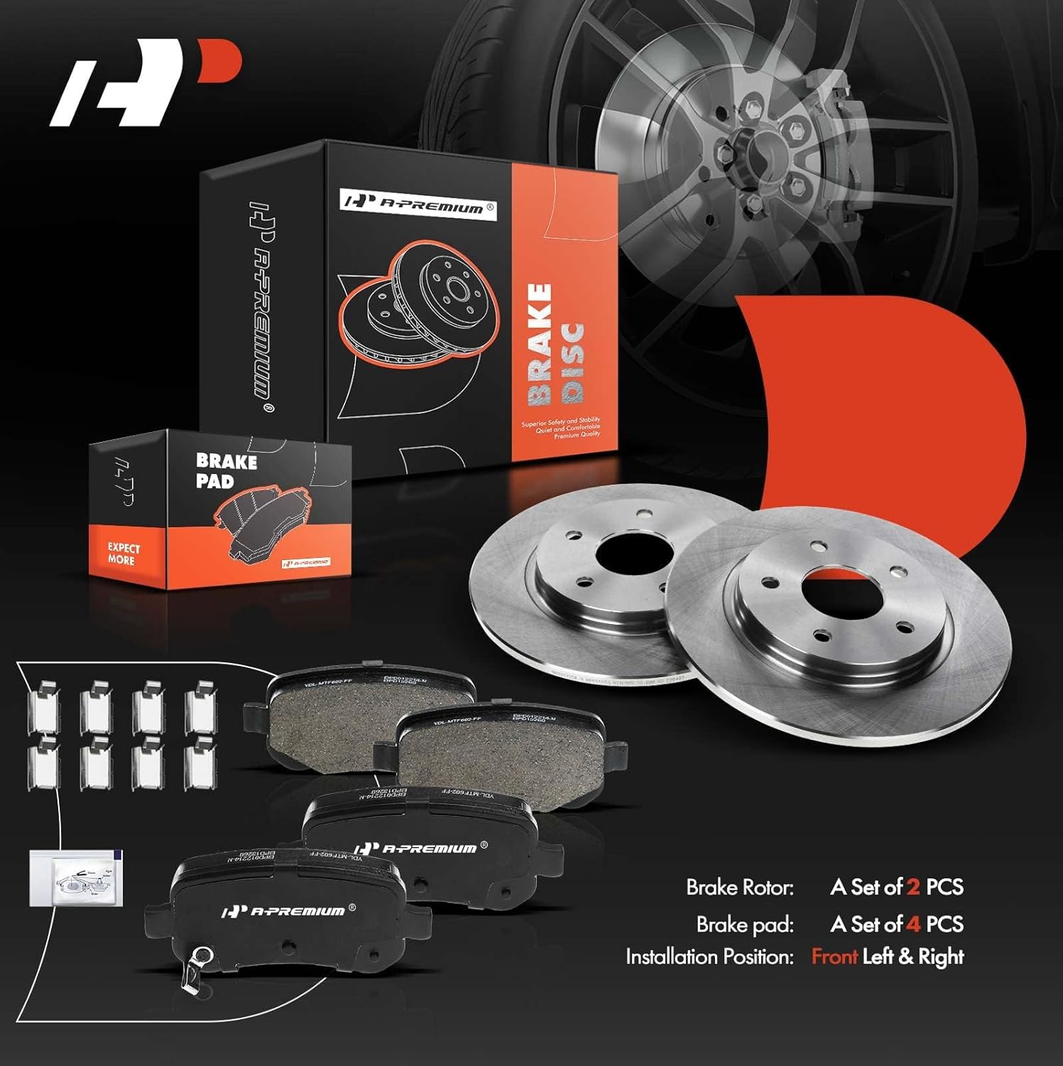 Descrição do Produto: A-Premium 12.01 in (305mm) Rear Solid Disc Brake Rotors Ceramic Pads Kit