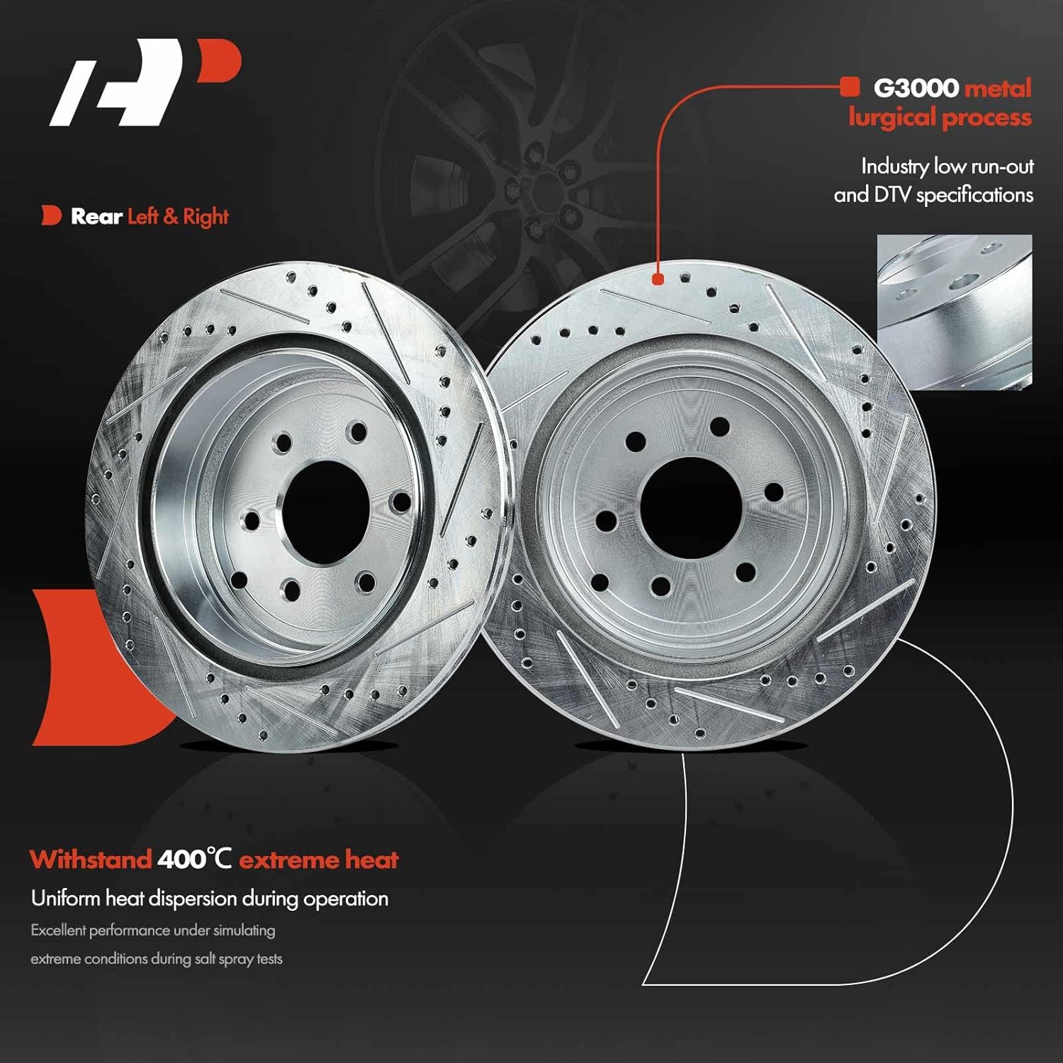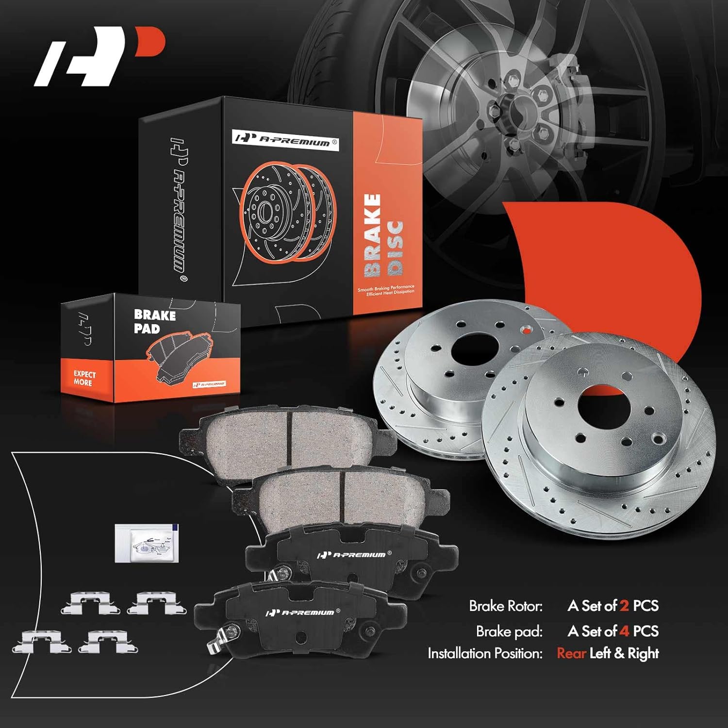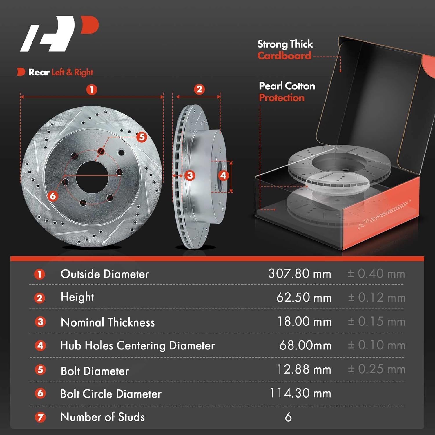 Descrição do Produto: A-Premium 12.1 polegadas (307mm) Discos de Freio Traseiros Perfurados e Ranhurados com Kit de Pastilhas Cerâmicas