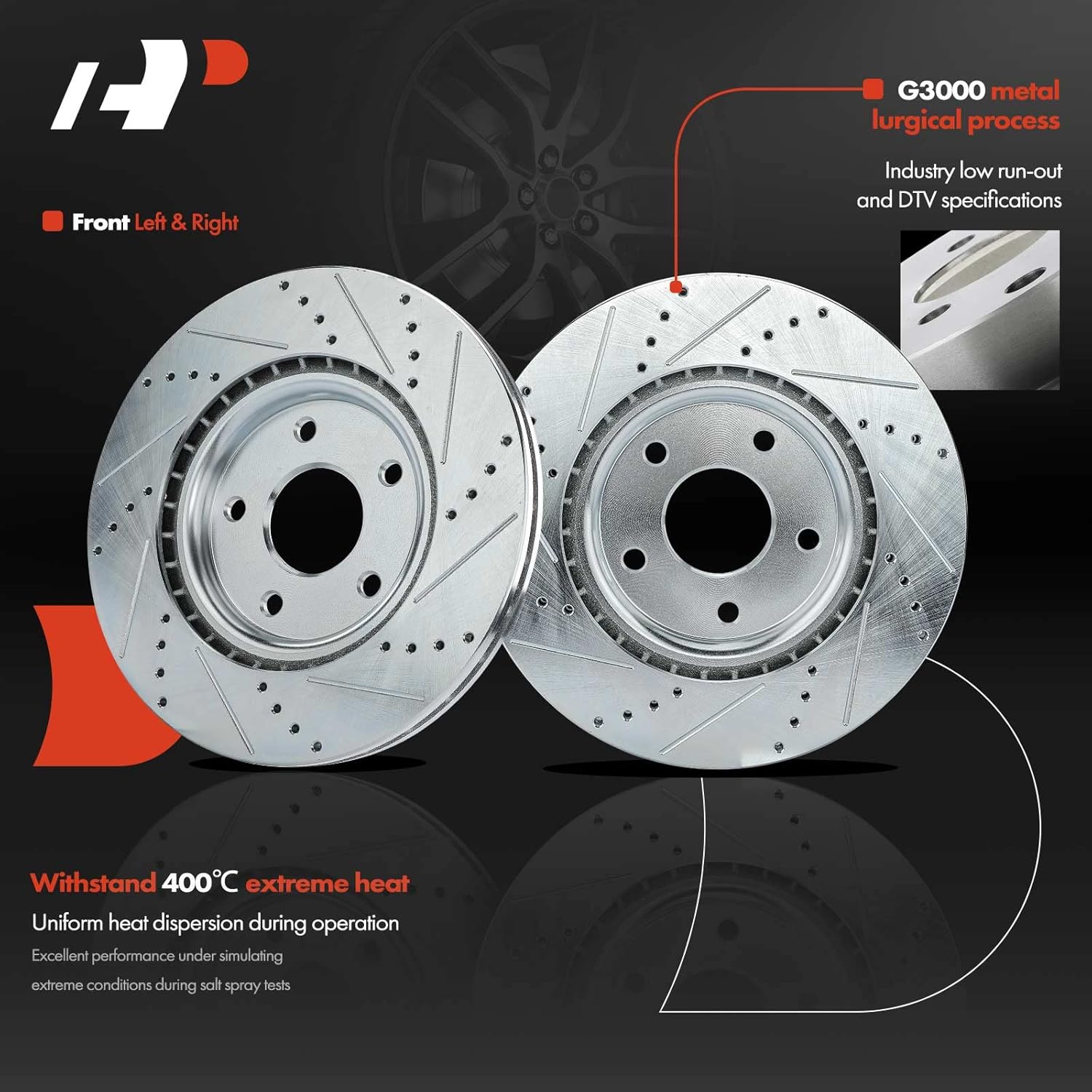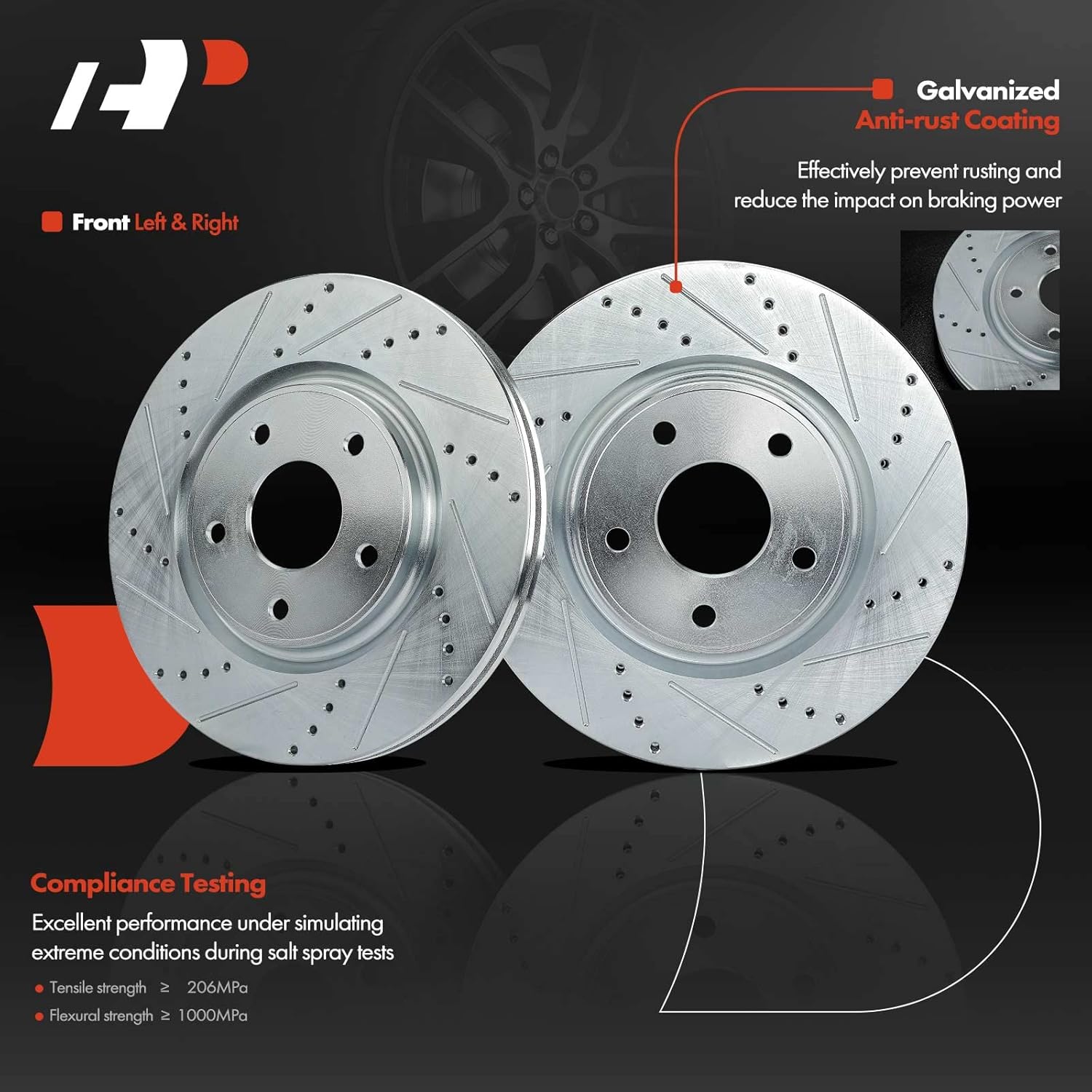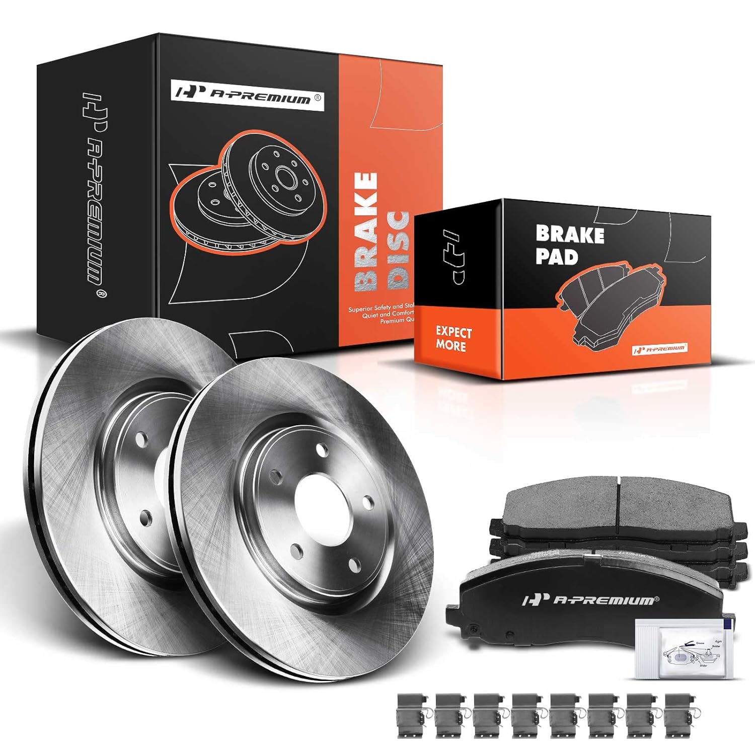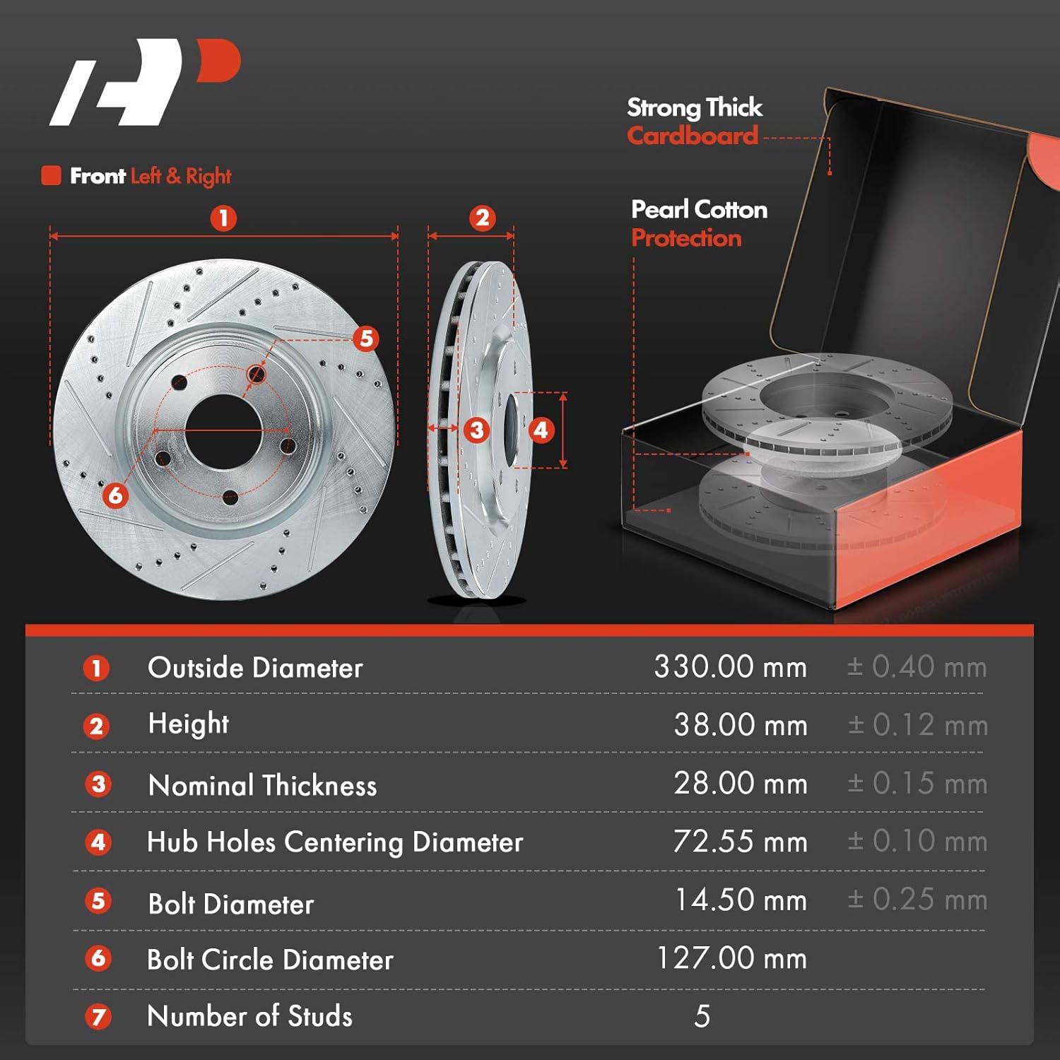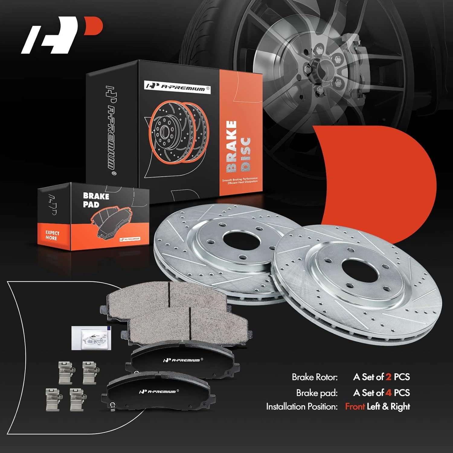 Descrição do Produto: A-Premium 12.99 inch (330 mm) Front Drilled and Slotted Disc Brake Rotors Ceramic Pads Kit